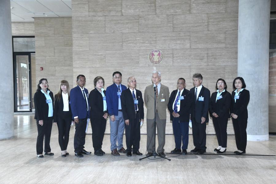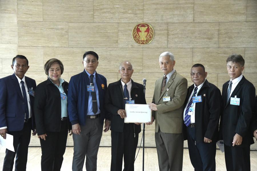 วันอังคารที่ 24 ตุลาคม 2566 เวลา 13.00 นาฬิกา ณ จุดรับยื่นหนังสือ ชั้น 1 (โซนกลาง) อาคารรัฐสภา นายวันมูหะมัดนอร์ มะทา ประธานสภาผู้แทนราษฎร มอบหมายให้ นายอารีเพ็ญ อุตรสินธุ์ ที่ปรึกษาประธานสภาผู้แทนราษฎร รับยื่นร่าง พ.ร.บ.สวัสดิการการรักษาพยาบาลลูกจ้างผู้รับบำเหน็จรายเดือน และผู้ได้รับบำเหน็จพิเศษรายเดือน พ.ศ. .... จากนายวิชาญ ชัยชมภู ตัวแทนผู้มีสิทธิเลือกตั้ง และคณะ เพื่อนำกราบเรียนประธานสภาผู้แทนราษฎรพิจารณา ก่อนที่จะไปดำเนินการเชิญชวนผู้มีสิทธิเลือกตั้งคนอื่นให้ร่วมเข้าชื่อเสนอร่าง พ.ร.บ.ดังกล่าวให้ครบจำนวนไม่น้อยกว่า 10,000 คน ตามรัฐธรรมนูญแห่งราชอาณาจักรไทย ประกอบ พ.ร.บ.การเข้าชื่อเสนอกฎหมาย พ.ศ. 2564