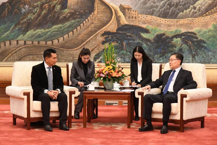 วันพฤหัสบดีที่ 7 ธันวาคม 2566 เวลา 10.20 นาฬิกา นายพิเชษฐ์ เชื้อเมืองพาน รองประธานสภาผู้แทนราษฎร คนที่สอง และคณะ ได้เยี่ยมชมมหาศาลาประชาชน จากนั้น ในเวลา 11.00 น. ได้เข้าพบปะหารือกับนายหวัง ตงหมิง รองประธานสภาประชาชนแห่งชาติจีน โดยรองประธานสภาประชาชนฯ ได้กล่าวต้อนรับคณะด้วยความยินดี และกล่าวถึงกลุ่มมิตรภาพสมาชิกรัฐสภาจีน-ไทย ซึ่งมาร่วมให้การต้อนรับในวันนี้ด้วย ทั้งนี้ ความสัมพันธ์อันดีที่มีมาอย่างยาวนานระหว่างไทยและจีนในปี 2568 จะครบรอบ 50 ปี ความสัมพันธ์ทางการทูตไทย-จีน ซึ่งเห็นควรจัดกิจกรรมระหว่างกัน โดยจีนและไทยมีความสัมพันธ์ที่ดีต่อกันในทุกระดับ ในระดับรัฐบาล ประธานาธิบดีสี จิ้นผิง ได้เดินทางไปประชุม APEC ที่ไทยเป็นเจ้าภาพเมื่อปี 2565 และนายกรัฐมนตรีไทย นายเศรษฐา ทวีสิน ก็ได้เดินทางมาประชุมหนึ่งแถบหนึ่งเส้นทาง (BRI) ที่จีนเป็นเจ้าภาพเมื่อเดือนตุลาคมที่ผ่านมา ซึ่งได้มีการหารือกันในความร่วมมือด้านต่างๆ เพื่อขับเคลื่อนความสัมพันธ์ระหว่างกันให้ครอบคลุมทุกมิติ โอกาสนี้ ประธานสภาประชาชนแห่งชาติจีนได้ฝากความระลึกถึงไปยังประธานสภาผู้แทนราษฎรและประธานวุฒิสภาของไทยด้วย