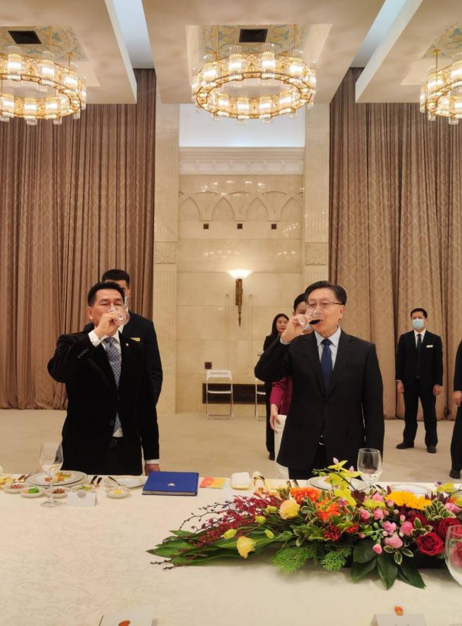 เมื่อสิ้นสุดการสนทนา รองประธานสภาประชาชนฯ ได้เป็นเจ้าภาพเลี้ยงอาหารกลางวันเพื่อเป็นเกียรติแก่รองประธานสภาผู้แทนราษฎรฯ และคณะ ในโอกาสที่มาเยือนสภาประชาชนแห่งชาติจีน