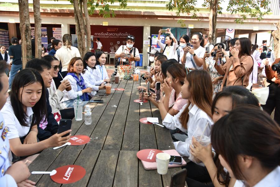 วันอาทิตย์ที่ 10 ธันวาคม 2566 เวลา 10.00 17.00 นาฬิกา ณ บริเวณลานประชาชน รัฐสภา สำหรับบรรยากาศการจัดงานวันรัฐธรรมนูญ ประจำปี 2566 ร่วมก้าวย่างบนเส้นทางประชาธิปไตย สู่เส้นชัยแห่งรัฐธรรมนูญ ภายในงานมี สภากาแฟ บริเวณม้านั่งในร่มไม้ โดยมีโต๊ะ สส.หญิง ประกอบด้วย น.ส.ธีรรัตน์ สำเร็จวาณิชย์ สส.พรรคเพื่อไทย น.ส.ศศินันท์ ธรรมนิฐินันท์ และน.ส.รัชนก สุขประเสริฐ สส.พรรคก้าวไกล สำหรับโต๊ะสภากาแฟของ สส.ชาย ประกอบด้วย นายอนุสรณ์ เอี่ยมสะอาด สส.พรรคเพื่อไทย นายกัณวีร์ สืบแสง สส.พรรคเป็นธรรม นายณัฐชา บุญไชยอินสวัสดิ์ นายณัฐพงษ์ เรืองปัญญาวุฒิ นายศุภณัฐ มีนชัยนันท์ สส.พรรคก้าวไกล เพื่อเปิดโอกาสให้พี่น้องประชาชนเข้ามาสัมผัสพูดคุยจิบกาแฟในยามบ่ายเล่าเรื่องราวของประชาธิปไตย ซึ่งสะท้อนให้เห็นถึงการเมืองรุ่นใหม่ นอกจากนี้ ยังมีการแสดงดนตรี โดย วงระบัดใบ วงสามัญชน และวงพัชร์จุรี ทั้งนี้ ภายในงานมีการออกบูทขององค์กรเครือข่ายต่าง ๆ ร้านค้าจำหน่ายสินค้าเป็นจำนวนมากตลอดจนมีการถาม ตอบ ชิงรางวัลมากมาย