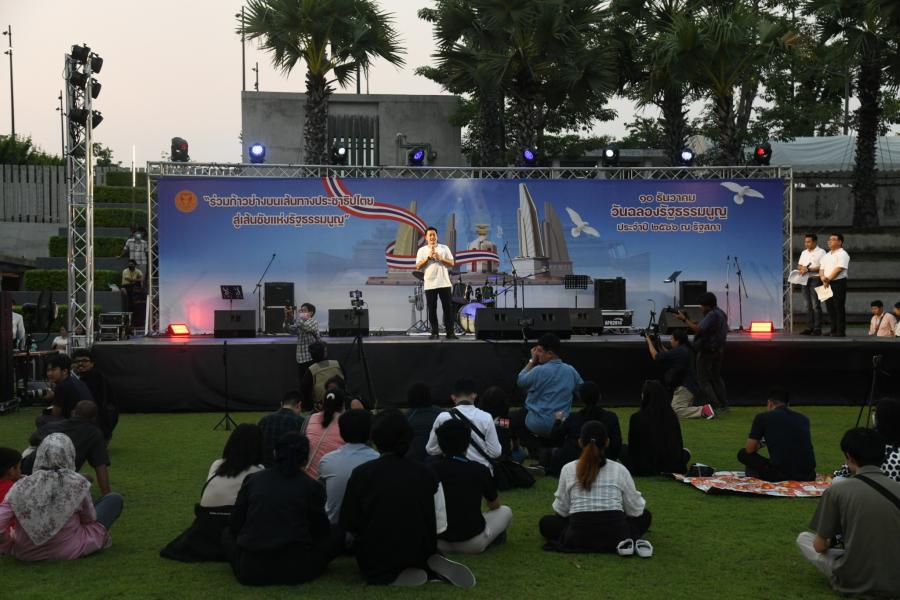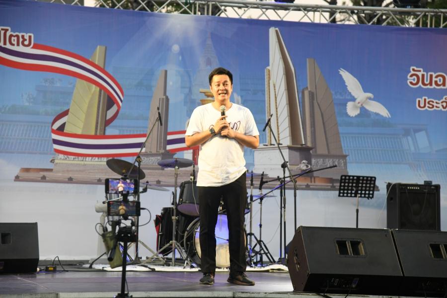 โอกาสนี้ รองประธานสภาผู้แทนราษฎร คนที่หนึ่ง กล่าวต้อนรับประชาชนที่มาร่วมงานวันรัฐธรรมนูญที่รัฐสภาว่า ในนามของคณะกรรมการจัดงานวันรัฐธรรมนูญ ประจำปี 2566 ขอต้อนรับประชาชนทุกคนที่มาร่วมงานวันรัฐธรรมนูญ ประจำปี 2566 ซึ่งเป็นการฉลองรัฐธรรมนูญอีกครั้งภายใต้ชื่องาน " ร่วมก้าวย่างบนเส้นทางประชาธิปไตย สู่เส้นชัยแห่งรัฐธรรมนูญ " ในวันนี้  การจัดงานวันรัฐธรรมนูญในปีนี้ ถือเป็นครั้งแรกที่รัฐสภาได้จัดขึ้น และเป็นการรื้อฟื้นการจัดงานเฉลิมฉลองวันรัฐธรรมนูญขึ้นอีกครั้ง หลังจากที่ไม่มีการจัดมา 66 ปี หรือตั้งแต่ปี 2500 โดยมีวัตถุประสงค์หลักเพื่อเผยแพร่ความรู้ความเข้าใจเกี่ยวกับรัฐธรรมนูญ และให้ประชาชนเกิดความภาคภูมิใจในรัฐธรรมนูญ และตระหนักถึงความสำคัญของรัฐธรรมนูญ ในฐานะที่เป็นกฎหมายสูงสุดในการปกครองประเทศ และการจัดงานในครั้งนี้ ยังมุ่งส่งเสริมการมีส่วนร่วมทางการเมืองของประชาชน โดยเฉพาะเยาวชน คนหนุ่ม - สาว คนรุ่นใหม่ ที่มีหัวใจเป็นประชาธิปไตย จะได้มีโอกาสมาแสดงความคิดเห็นในเรื่องต่าง ๆ เพื่อหาทางออก ณ ลานประชาชนแห่งนี้ ซึ่งในวันนี้เป็นครั้งแรกที่เปิดใช้จัดกิจกรรม และเป็นพื้นที่ในการ แสดงความคิดเห็นของ ประชาชนต่อไป เพื่อให้ประชาชนทุกคนในฐานะที่เป็นเจ้าของอำนาจอธิปไตยได้เข้ามาใช้พื้นที่ในการจัดกิจกรรมต่าง ๆ และทำให้สมาชิกสภาผู้แทนราษฎรได้ใกล้ชิดกับประชาชนมากยิ่งขึ้น และใช้กลไกของรัฐสภาในการนำเอาปัญหา หรือข้อเรียกร้องต่าง ๆ เข้ามาสู่กระบวนการและหาทางออกต่อไป อีกทั้งจะเป็นการฟื้นฟูความเชื่อมั่นของประชาชนต่อการเมืองไทยในระบบรัฐสภา ผ่านการมีส่วนร่วมของประชาชน การจัดงานในวันนี้ ถือเป็นก้าวย่างของประชาธิปไตยอย่างแท้จริง ซึ่งวันที่ 10 ธันวาคม นอกจากจะเป็นวันรัฐธรรมนูญของคนไทยแล้ว ยังเป็นอีกวันที่มีความสำคัญ นั่นก็คือ "วันสิทธิมนุษยชนสากล" ซึ่งเป็นที่ยอมรับกันทั่วโลกว่า "มนุษย์ทั้งปวงเกิดมามีอิสระ และเสมอภาคกันในศักดิ์ศรีและสิทธิในตนมีเหตุผลและมโนธรรม และควรปฏิบัติต่อกันด้วยจิตวิญญาณแห่งภราดรภาพ" อันสอดคล้องกับรากฐานแนวคิดของรัฐธรรมนูญที่บัญญัติและรับรองไว้ ขอให้ร่วมเฉลิมฉลองวันรัฐธรรมนูญด้วยสาระความรู้และความสนุกสนาน และขอขอบคุณคณะผู้จัดงาน ตลอดจนเจ้าหน้าที่ หน่วยงาน และองค์ต่าง ๆ ที่มีส่วนร่วมในการจัดกิจกรรมในครั้งนี้