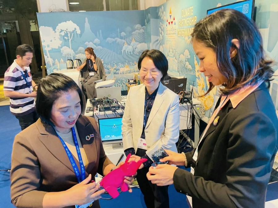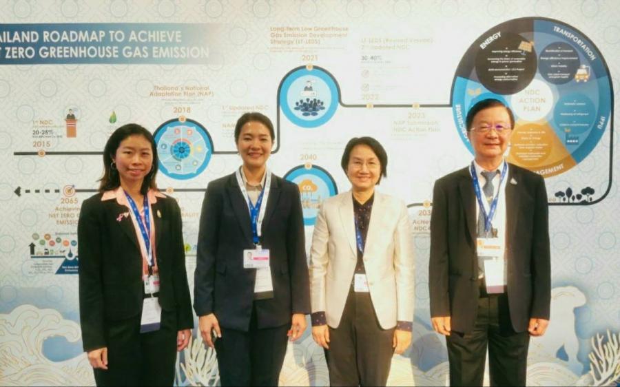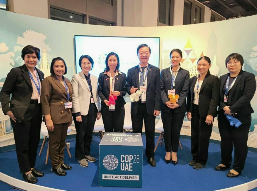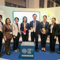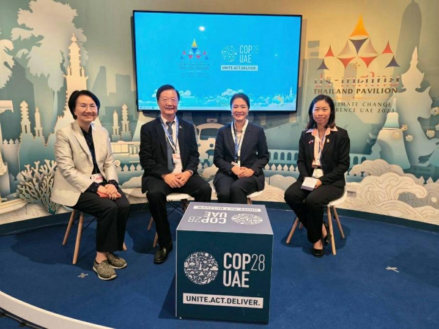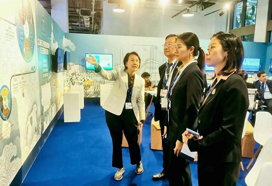 ในการนี้ ดร.จงรักษ์ ฐินะกุล ผู้เชี่ยวชาญเฉพาะด้านสิ่งแวดล้อมและเผยแพร่ กรมการเปลี่ยนแปลงสภาพภูมิอากาศ กระทรวงทรัพยากรธรรมชาติและสิ่งแวดล้อม ได้นำคณะผู้แทนรัฐสภาไทยเยี่ยมชมซุ้มนิทรรศการของประเทศไทยที่จัดแสดงในโอกาสการประชุม COP28 ซึ่งประกอบด้วย 1) ภาพแสดงแผนที่นำทางการลดก๊าซเรือนกระจกของประเทศ ปี พ.ศ. 2564-2573 (Thailand's Nationally Determined Contribution (NDC) Roadmap on Mitigation 2021 2030) เพื่อให้เป็นไปตามเป้าหมายการลดก๊าซเรือนกระจกที่ร้อยละ 20 ภายในปี พ.ศ.2573 หรือเทียบเท่าประมาณ 115.6 ล้านตันคาร์บอนไดออกไซด์ 2) การจัดเวทีสำหรับกิจกรรมสานเสวนาระหว่างภาครัฐ ภาคเอกชน ภาคประชาสังคมระหว่างประเทศ เพื่อแลกเปลี่ยนและรับฟังความคิดเห็นในระดับนานาชาติ และ 3) การแสดงผลิตภัณฑ์ของภาครัฐและเอกชนที่เข้าร่วมโครงการริเริ่มและพัฒนาสินค้าที่ใช้นวัตกรรมที่คำนึงถึงสิ่งแวดล้อม (Thailand Innovation Zone) เป็นต้น