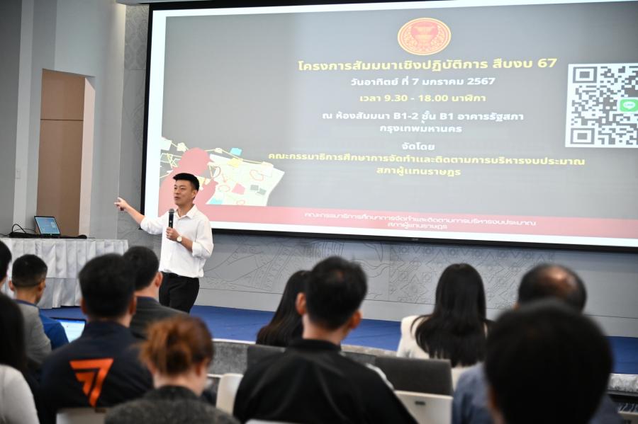 วันอาทิตย์ที่ 7 มกราคม 2567 เวลา 09.30 นาฬิกา ณ ห้องจัดประชุมสัมมนา B1-2 ชั้น B1 อาคารรัฐสภา นายณัฐพงษ์ เรืองปัญญาวุฒิ ประธานคณะกรรมาธิการศึกษาการจัดทำและติดตามการบริหารงบประมาณ เปิดโครงการสัมมนาเชิงปฏิบัติการ เรื่อง "สืบ งบ 67" โดยมี ประธานคณะกรรมาธิการ กรรมาธิการ สมาชิกสภาผู้แทนราษฎร ที่ปรึกษา ผู้ชำนาญการ นักวิชาการ เลขานุการประจำคณะกรรมาธิการ ผู้ทรงคุณวุฒิ ภาคเอกชน และประชาชน เข้าร่วมสัมมนา