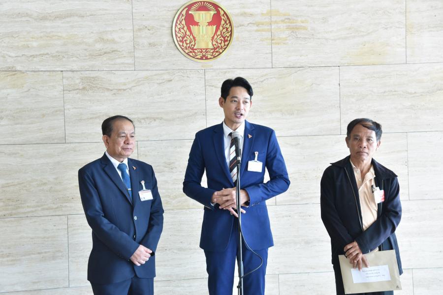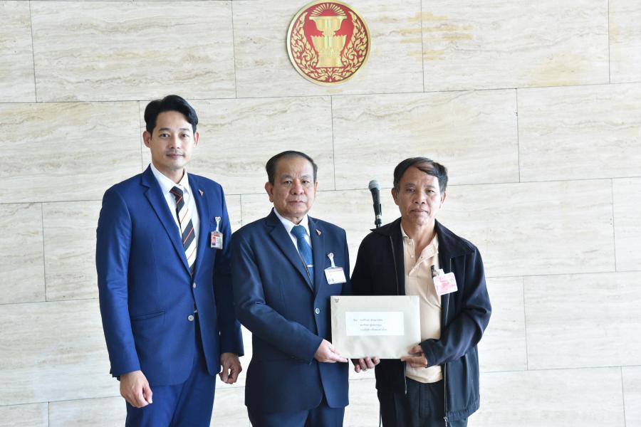 รศ.สุรวาท ทองบุ พร้อมด้วย นายกรุณพล เทียนสุวรรณ สส.พรรคก้าวไกล รับยื่นหนังสือจาก นายภูริทัต ภูร์ชัยแสง และคณะ เรื่อง ขอให้แก้ไขปัญหาการดำเนินงานของชุมนุมสหกรณ์ยางพาราบึงกาฬ จำกัด