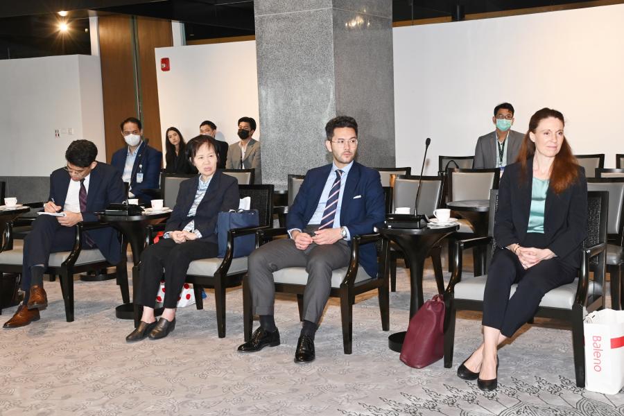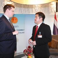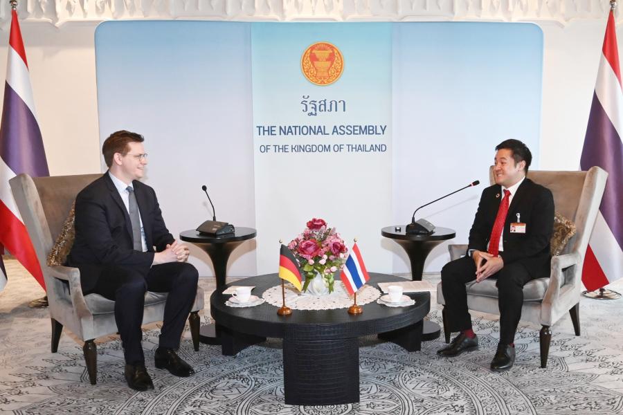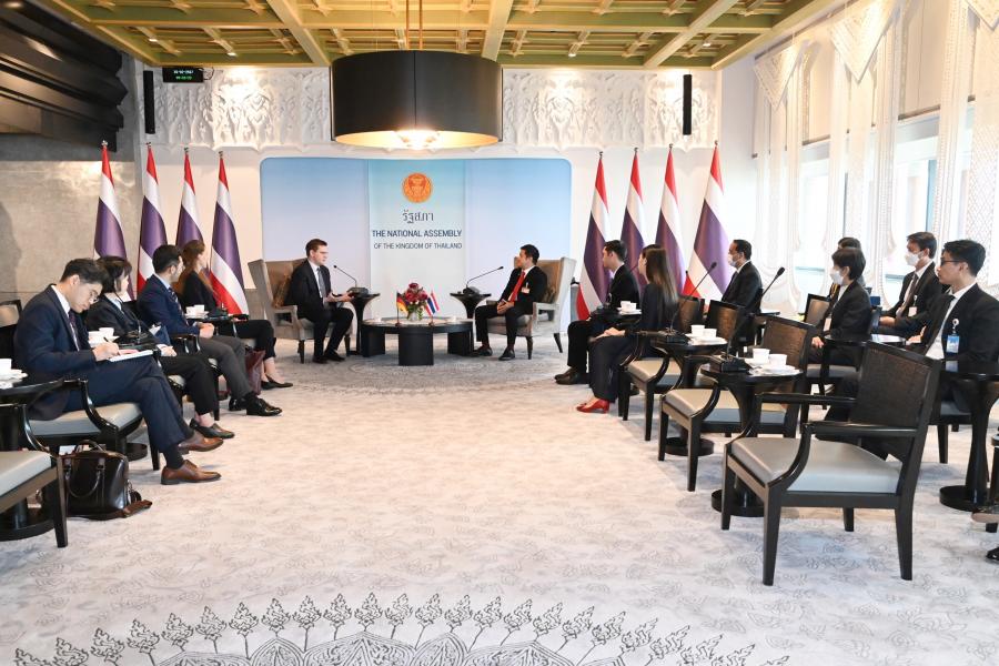 รองประธานสภาผู้แทนราษฎร คนที่หนึ่ง กล่าวต้อนรับสมาชิกสภาผู้แทนราษฎรด้วยความยินดี พร้อมกล่าวถึงความสัมพันธ์ระหว่างไทย - เยอรมนี ที่มีความแน่นแฟ้นมาอย่างยาวนาน และขอบคุณมูลนิธิคอนราด อเดนาวร์ ประจำประเทศไทย ที่ได้ให้การสนับสนุนงบประมาณรัฐสภาไทยมาอย่างต่อเนื่องในการส่งเสริมประชาธิปไตยให้แก่ยุวชน การให้ประชาชนทุกภาคส่วนเข้ามามีส่วนร่วมทางการเมืองมากขึ้น โดยการเลือกตั้งครั้งล่าสุด รัฐสภาของทั้งสองประเทศได้มีคนรุ่นใหม่เข้ามาทำหน้าที่ในสภาผู้แทนราษฎรมากขึ้น โดยเฉพาะการมีสตรีและเพศทางเลือกเข้าทำหน้าที่มากขึ้นเช่นเดียวกัน ซึ่งมีบทบาทสำคัญในการทำหน้าที่ในสภาผู้แทนราษฎร เพื่อเสนอญัตติ ร่าง พ.ร.บ. การพิจารณากฎหมาย การตรวจสอบการบริหารราชการแผ่นดิน และส่งเสริมประชาธิปไตยให้มีความเข้มแข็ง