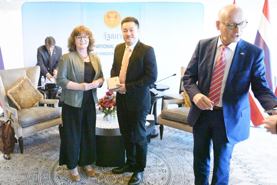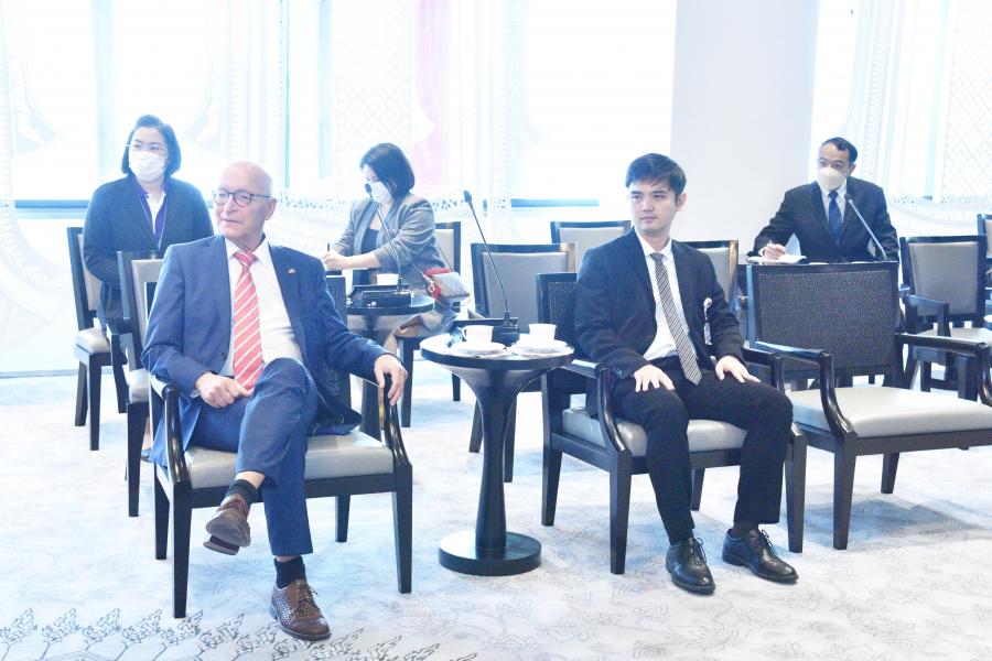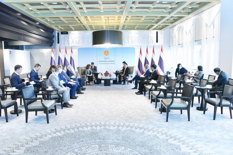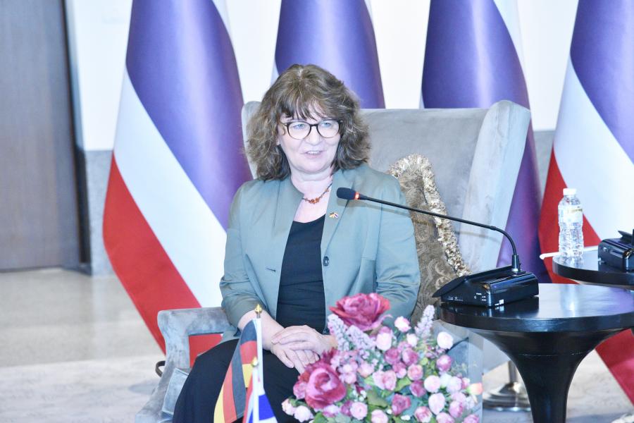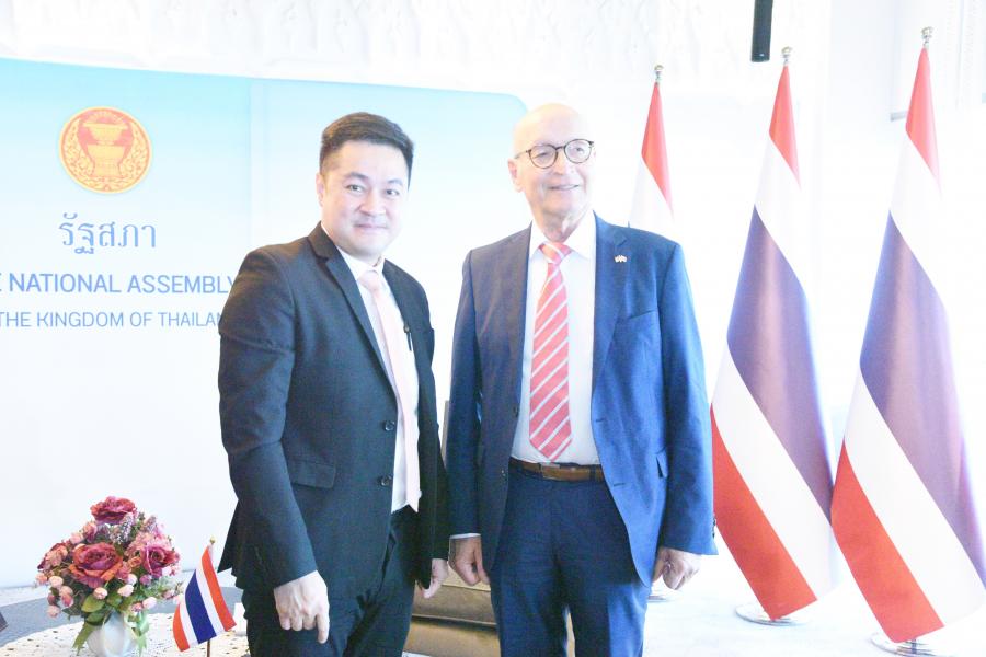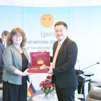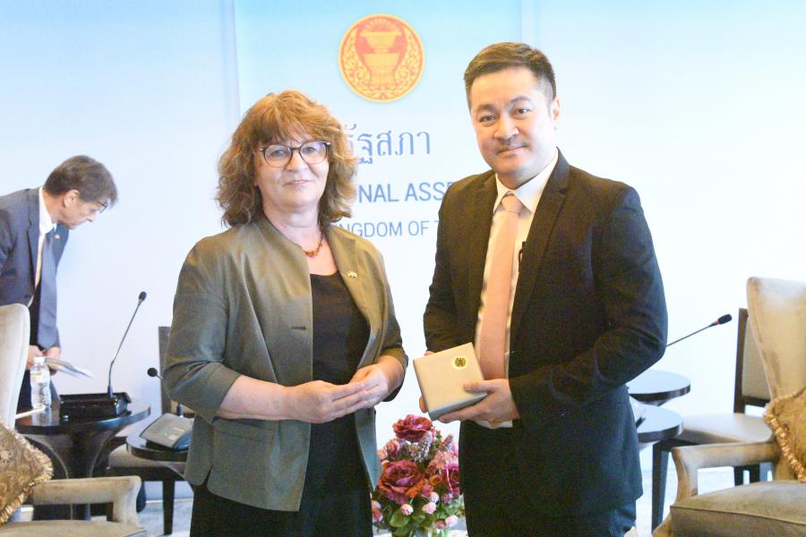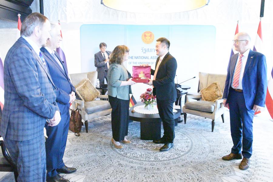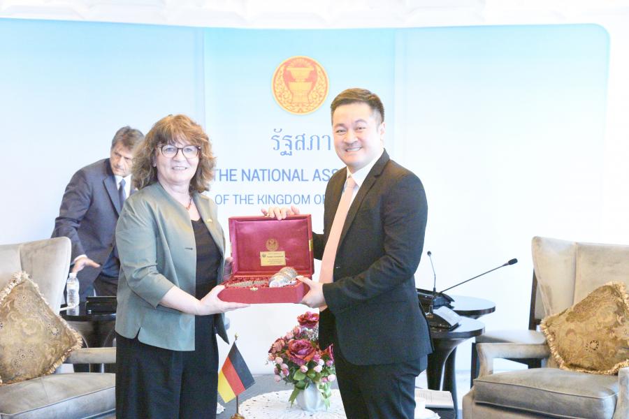 รองประธานสภาผู้แทนราษฎร คนที่หนึ่ง กล่าวต้อนรับประธานคณะ กมธ.ตรวจสอบคำร้อง ด้วยความยินดี พร้อมกล่าวถึงความสัมพันธ์ระหว่างไทย-เยอรมนี ที่มีความแน่นแฟ้นมาอย่างยาวนาน และกล่าวชื่นชมการพัฒนาของเยอรมนีในด้านต่าง ๆ ไม่ว่าจะเป็น ด้านประชาธิปไตย เศรษฐกิจ สิทธิมนุษยชน และการรับมือกับการเปลี่ยนแปลงสภาพภูมิอากาศ ซึ่งตนมีความสนใจแนวทางและคิดว่าสามารถเพื่อนำมาปรับใช้กับประเทศต่าง ๆ เอเชียตะวันออกเฉียงใต้ โดยเฉพาะในด้านการส่งเสริมประชาธิปไตยในไทย ซึ่งที่ผ่านมาไทยได้มีการพัฒนาทางการเมืองมาตามลำดับ ปัจจุบัน รัฐสภาไทยได้ให้ความสำคัญกับบทบาทสตรี และเยาวชนในด้านการเมือง ดังจะเห็นได้จากสัดส่วนของสมาชิกรัฐสภาสตรีและยุวสมาชิกรัฐสภาเพิ่มมากขึ้นจากในอดีต โดยมีความมุ่งมั่นที่จะผลักดันร่างกฎหมายเกี่ยวกับความเท่าเทียมทางเพศให้ได้มากที่สุด อย่างไรก็ดี ควรมีการส่งเสริมบทบาทของประชาชนในการร่วมกำหนดนโยบายดังกล่าวเพื่อความโปร่งใส ซึ่งรัฐสภาไทยประสงค์ที่จะเรียนรู้จากเยอรมนี โดยเฉพาะในด้านความร่วมมือทางเศรษฐกิจสีเขียว และพลังงานสะอาดระหว่างกัน ตลอดจนการถ่ายทอดเทคโนโลยีในด้านต่าง ๆ ให้กับไทย