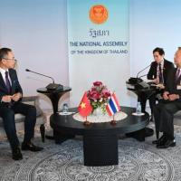 เมื่อวันพฤหัสบดีที่ 29 กุมภาพันธ์ 2567 เวลา 17.00 นาฬิกา ณ ห้องรับรองพิเศษ 205 ชั้น 2 โซนกลาง อาคารรัฐสภา นายชวน หลีกภัย สมาชิกสภาผู้แทนราษฎรและอดีตประธานรัฐสภาและประธานสภาผู้แทนราษฎร ให้การรับรอง H.E. Mr. Phan Chi Thanh (นายฟาน จี๊ ทัญ) เอกอัครราชทูตสาธารณรัฐสังคมนิยมเวียดนามประจำประเทศไทย เพื่ออำลาในโอกาสพ้นจากตำแหน่งหน้าที่ โดยมี นางสาวผ่องศรี ธาราภูมิ ผู้ชำนาญการประจำตัวนายชวน หลีกภัย นายณัฐกานต์ ชูชนะ ผู้ช่วยปฏิบัติงานนายชวน หลีกภัย นางสาวสุภางค์จิตต ไตรเพทพิสัย ผู้ติดตามนายชวน หลีกภัย นายสราวุธ ช้างแก้ว ผู้บังคับบัญชากลุ่มงานข้อมูลข่าวสารระหว่างประเทศ สำนักความสัมพันธ์ระหว่างประเทศ และนางณัฏฐ์สุมน สมสมาน ผู้บังคับบัญชากลุ่มงานภาษาญี่ปุ่นและเกาหลี สำนักภาษาต่างประเทศ ร่วมให้การรับรอง