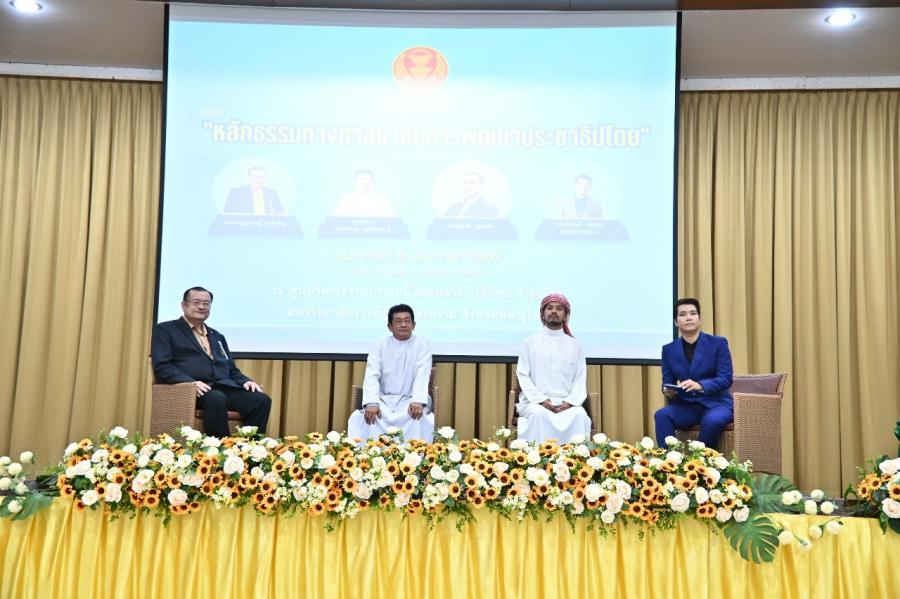 ต่อจากนั้น เป็นการเสวนาทางวิชาการเรื่อง หลักธรรมทางศาสนากับการพัฒนาประชาธิปไตย โดย นายณัฏฐกฤษฎ์ วงศ์เจริญ ที่ปรึกษาด้านระบบงานนิติบัญญัติ นายชูชาติ พุฒเพ็ง และบาทหลวงรังสิพล เปลี่ยนพันธุ์ ดำเนินรายการโดย นายพิพัฒน์ อัฒพุธ