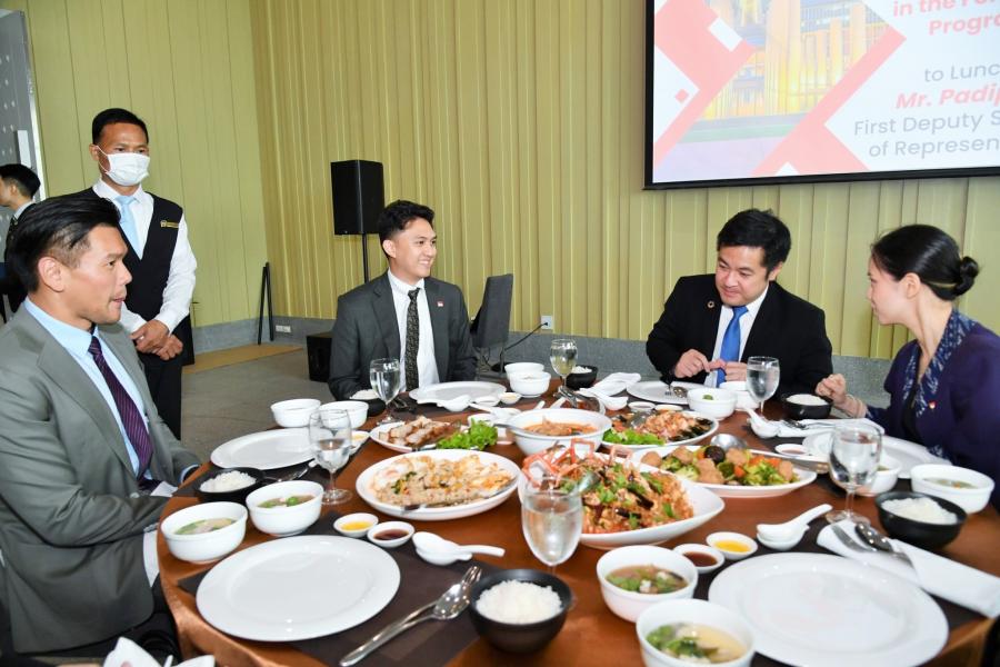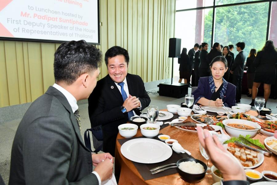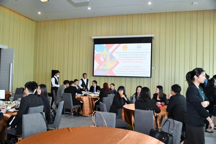 วันพฤหัสบดีที่ 21 มีนาคม 2567 เวลา 11.30 นาฬิกา ณ ห้องจัดเลี้ยง 111 ชั้น 1 อาคารรัฐสภา นายปดิพัทธ์ สันติภาดา รองประธานสภาผู้แทนราษฎร คนที่หนึ่ง เป็นเจ้าภาพเลี้ยงรับรองคณะนักการทูตจากกระทรวงการต่างประเทศ สาธารณรัฐสิงคโปร์ จากโครงการฝึกอบรมขั้นพื้นฐานด้านการต่างประเทศ (Foreign Service Basic Programme training) ในโอกาสเข้าเยี่ยมคารวะเพื่อศึกษาดูงานและเยี่ยมชมรัฐสภา