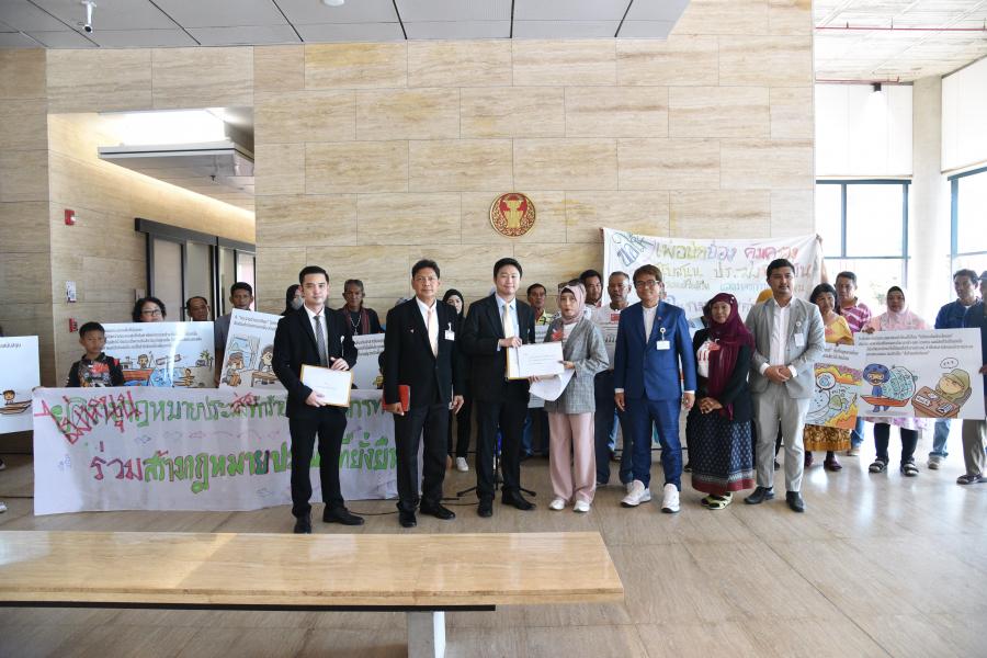 วันพฤหัสบดีที่ 28 มีนาคม 2567 เวลา 11.30 นาฬิกา ณ จุดรับยื่นหนังสือ ชั้น 1 (โซนกลาง) อาคารรัฐสภา นายพงษ์สรณัฐ ทองลี เลขานุการรองประธานสภาผู้แทนราษฎร คนที่หนึ่ง พร้อมด้วยนายวรภพ วิริยะโรจน์ รองประธานคณะ กมธ.วิสามัญพิจารณาศึกษาและเสนอแนะการแก้ไขกฎหมายที่เกี่ยวข้องกับกิจการประมงให้เกิดความเหมาะสมและเป็นธรรมกับผู้ประกอบการประมงและกิจการประมงทั้งระบบ คนที่สอง รับยื่นหนังสือประเด็นข้อกังวลต่อการแก้ไข พ.ร.ก.การประมง พ.ศ. 2558 จากนายเหลด เมงไซ อุปนายกสมาคมสมาพันธ์ชาวประมงพื้นบ้านแห่งประเทศไทย และน.ส.ปิยะดา เด็นเก ตัวแทนจากสมาคมสมาพันธ์ชาวประมงพื้นบ้านแห่งประเทศไทย และคณะ