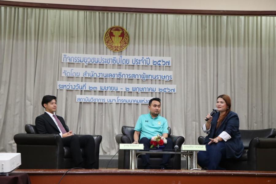 | เมื่อวันอังคารที่ 30 เมษายน 2567 เวลา 13.00 นาฬิกา ณ สถาบันวิชาการ บริษัท โทรคมนาคมแห่งชาติ (NT) จ.นนทบุรี นายสุไลมาน บือแนปีแน สส. จังหวัดยะลา พรรคประชาชาติ และนายศุภณัฐ มีนชัยนันท์ สส. กรุงเทพฯ พรรคก้าวไกล ร่วมกิจกรรมการเสวนา สส. พบยุวชนประชาธิปไตย โดยได้ร่วมพูดคุยแลกเปลี่ยนประสบการณ์และแรงบันดาลใจในการทำงานการเมืองผ่านเวทีเสวนาร่วมกับเยาวชนจากทั่วประเทศที่เข้าร่วมกิจกรรมยุวชนประชาธิปไตย ประจำปี 2567 โดยมี น.ส. พรหมพิริยา พาพรมมี เจ้าพนักงานประชาสัมพันธ์อาวุโส เป็นผู้ดำเนินการเสวนา โดยในช่วงท้ายของการเสวนาได้ให้ข้อคิดในการดำเนินชีวิตทั้งในด้านการเรียนและการทำงานให้ประสบความสำเร็จ 5 ประการ ประกอบด้วย เหตุและผล ระเบียบวินัย ความซื่อสัตย์ ความรับผิดชอบ และมีจิตสาธารณะ
