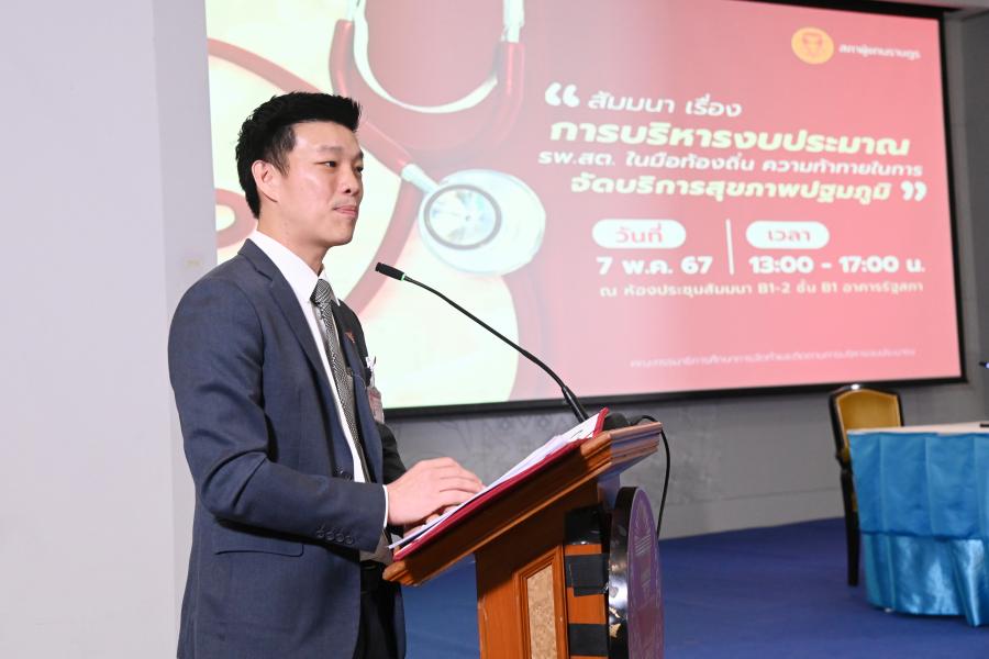 วันอังคารที่ 7 พฤษภาคม 2567 เวลา 13.30 นาฬิกา ณ ห้องประชุมสัมมนา B1 - 2 ชั้น B1 อาคารรัฐสภา นายณัฐพงษ์ เรืองปัญญาวุฒิ ประธานคณะ กมธ.ศึกษาการจัดทำและติดตามการบริหารงบประมาณ เป็นประธานในพิธีเปิดการสัมมนา เรื่อง การบริหารงบประมาณโรงพยาบาลส่งเสริมสุขภาพตำบล (รพ.สต.) ในมือท้องถิ่น ความท้าทายในการจัดบริการสุขภาพปฐมภูมิของคณะกมธ. ในการนี้ สส. คณะ กมธ. คณะผู้บริหารและบุคลากรสำนักงานเลขาธิการสภาผู้แทนราษฎร ผู้แทนจากองค์การบริหารส่วนจังหวัด และหน่วยงานที่เกี่ยวข้อง ร่วมการสัมมนา