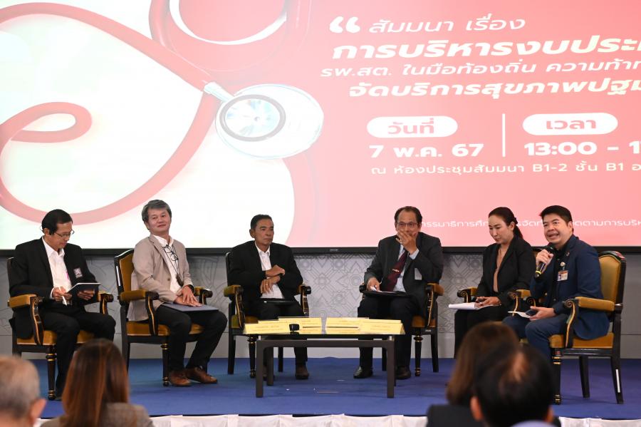 จากนั้น เป็นการสัมมนาในหัวข้อ "สถานการณ์การถ่ายโอน รพ.สต. - คน งบ ตัวชี้วัด บทเรียนความสำเร็จและความท้าทาย" โดย น.ส.กัลยาพัชร รจิตโรจน์ รองประธานคณะ กมธ.การสาธารณสุข คนที่หนึ่ง ให้เกียรติเป็นวิทยากร และการสัมมนาในหัวข้อ "การบริหารงบประมาณ รพ.สต. ในมือท้องถิ่น ความท้าทายในการจัดบริการสุขภาพปฐมภูมิ" โดยมีวิทยากร ประกอบด้วย นพ.ปรีดา แต้อารักษ์ รองเลขาธิการคณะกรรมการสุขภาพแห่งชาติ รศ.วสันต์ เหลืองประภัสร์ หัวหน้าสาขาบริหารรัฐกิจ คณะรัฐศาสตร์ มหาวิทยาลัย ธรรมศาสตร์ นายรังสรรค์ นันทกาวงศ์ นายกเทศมนตรีเทศบาลเมืองบึงยี่โถ จ.ปทุมธานี นางสมคิด ปานบุญ ผู้อำนวยการโรงพยาบาลส่งเสริมสุขภาพตำบลบางขะแยง และ พ.จ.อ.ชนินทร์ ราชมณี ผู้เชี่ยวชาญด้านบุคคล สมาคมองค์การบริหารส่วนจังหวัด ดำเนินรายการโดย นายไกลก้อง ไวทยการ ที่ปรึกษาประจำคณะ กมธ.