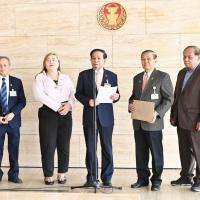 วันพุธที่ 15 พฤษภาคม 2567 เวลา 10.30 นาฬิกา ณ จุดรับยื่นหนังสือ ชั้น 1 (โซนกลาง) อาคารรัฐสภา นายธงชาติ รัตนวิชา ผู้ช่วยเลขานุการประธานสภาผู้แทนราษฎร รับยื่นร่าง พ.ร.บ.ยกเลิกคำสั่งหัวหน้าคณะรักษาความสงบแห่งชาติ (คสช.) ที่เกี่ยวกับการศึกษา จำนวน 3 ฉบับ จาก รศ.สุรวาท ทองบุ และนายปารมี ไวจงเจริญ สส.พรรคก้าวไกล พร้อมด้วยนายวีรบูล เสมาทอง ประธานสมาพันธ์สมาคมครูแห่งประเทศไทย (สคท.)