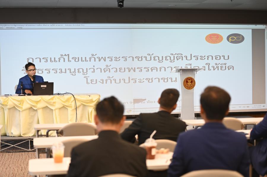 วันอังคารที่ 21 พฤษภาคม 2567 เวลา 09.00 นาฬิกา ณ ห้องประชุม 607 ชั้น 6 อาคารรัฐสภา นายพริษฐ์ วิชรสินธุ ประธานคณะ กมธ.การพัฒนาการเมือง การสื่อสารมวลชนและการมีส่วนร่วมของประชาชน กล่าวต้อนรับและเป็นประธานในพิธีเปิดการสัมมนาเรื่อง “การแก้ไขเพิ่มเติมพระราชบัญญัติประกอบรัฐธรรมนูญว่าด้วยพรรคการเมือง พ.ศ. 2560 ให้ยึดโยงกับประชาชน” จากนั้น นายพงศธร ศรเพชรนรินทร์ รองประธานคณะ กมธ. คนที่สี่ ในฐานะประธานคณะอนุ กมธ.พิจารณาศึกษาและจัดทำข้อเสนอในการส่งเสริมสถาบันพรรคการเมืองให้ยึดโยงกับประชาชน นำเสนอเกี่ยวกับการแก้ไขพระราชบัญญัติประกอบรัฐธรรมนูญว่าด้วยพรรคการเมืองให้ยึดโยงกับประชาชนของคณะอนุ กมธ. โดยมี คณะ กมธ. ที่ปรึกษาและเลขานุการประจำคณะ กมธ. คณะอนุ กมธ. ผู้แทนพรรคการเมือง นักวิชาการ หน่วยงานที่เกี่ยวข้อง บุคลากรสำนักกรรมาธิการ 2 และประชาชนที่สนใจ เข้าร่วมสัมมนา