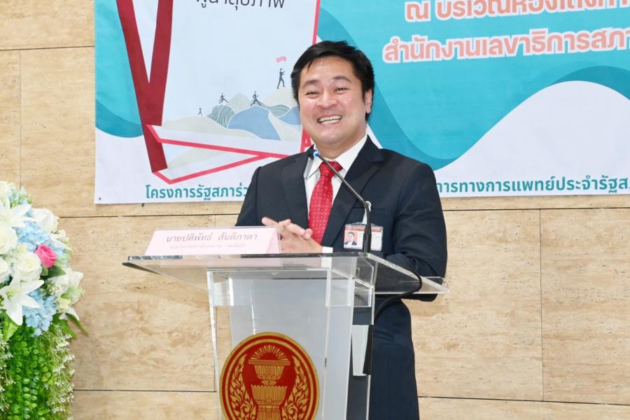 วันอังคารที่ 28 พฤษภาคม 2567 เวลา 13.30 นาฬิกา ณ ห้องโถง ชั้น 1อาคารรัฐสภา นายปดิพัทธ์ สันติภาดา รองประธานสภาผู้แทนราษฎร คนที่หนึ่ง เป็นประธานในพิธีเปิดกิจกรรม เวทีคนต้นแบบสร้างสุขรัฐสภา โครงการรัฐสภาร่วมใจรวมพลังสร้างสุข และเปิดตัวหนังสือ "เส้นทางสู่ผู้นำสุขภาพ" กล่าวรายงานโดย น.ส.กัลยรัชต์ ขาวสำอางค์