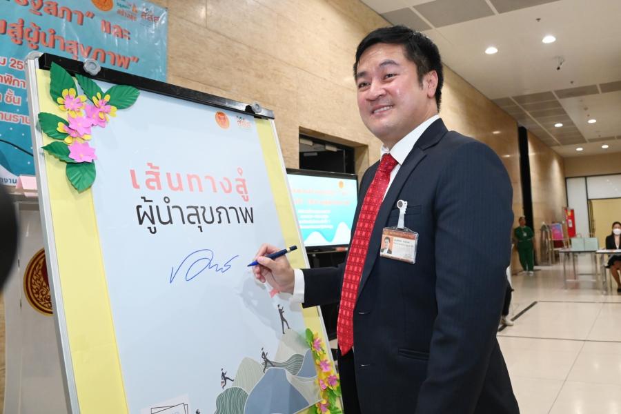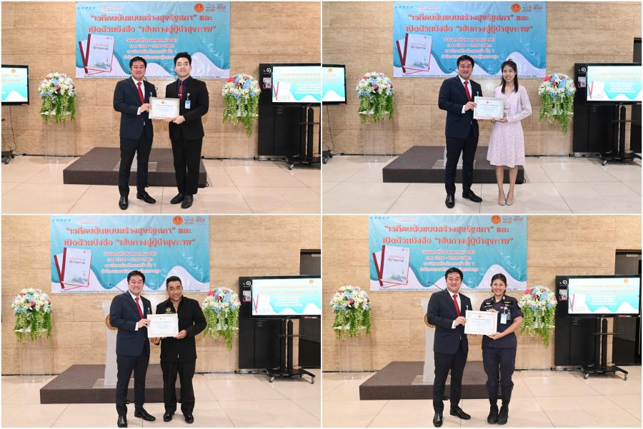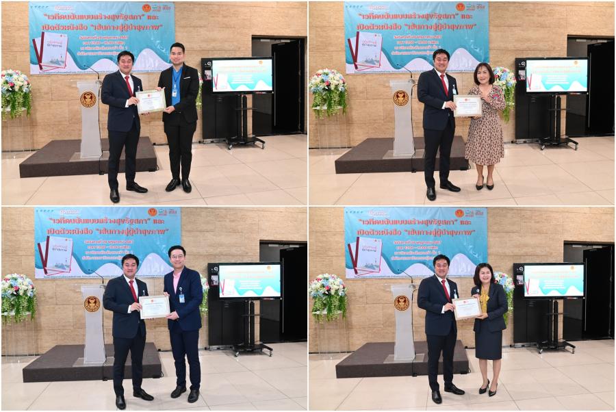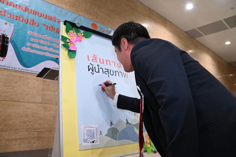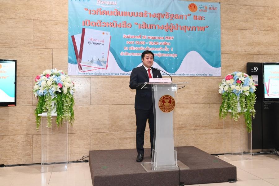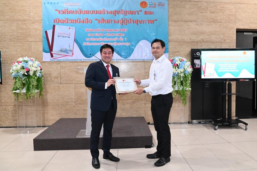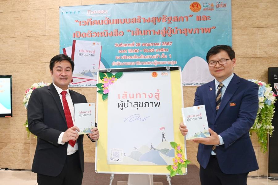 ในการนี้ รองประธานสภาผู้แทนราษฎร คนที่หนึ่ง รับมอบหนังสือ "เส้นทางสู่ผู้นำสุขภาพ" จาก นายพงษ์ศักดิ์ ธงรัตนะ ผู้อำนวยการ สสส. เพื่อนำไปมอบให้กับสมาชิกสภาผู้แทนราษฎรใช้เป็นคู่มือในการดูแลสุขภาพ สำหรับหนังสือดังกล่าว สสส. จัดทำขึ้นเพื่อให้ข้อมูลความรู้เกี่ยวกับการดูแลสุขภาพในชีวิตประจำวันที่สามารถทำตามได้ง่าย ๆ และทำได้ทุกที่ไม่ว่าจะเป็นที่บ้านหรือที่ทำงาน เพื่อเป็นคู่มือช่วยนำทางให้ทุกคนไปถึงจุดหมายปลายทางของการมีสุขภาพดีได้สำเร็จ และกลายเป็นผู้นำสุขภาพดีที่ช่วยนำทางให้คนอื่น ๆ เดินทางไปสู่เส้นชัยของการมีสุขภาพดี เนื่องจากสมาชิกสภาผู้แทนราษฎร เป็นผู้นำที่เป็นตัวแทนของประชาชนในการขับเคลื่อนสังคม หนึ่งในภารกิจที่สำคัญไม่แพ้เรื่องใด ๆ คือการหันมาดูแลสุขภาพอย่างเหมาะสมและถูกวิธีซึ่งจะทำให้มีกายและใจที่พร้อมทำงานและทำประโยชน์ให้กับสังคมต่อไป และใช้ความในฐานะผู้นำโน้มน้าว ชักชวน และช่วยเหลือให้คนรอบตัวได้มีสุขภาพดีไปด้วยกัน