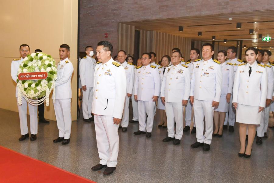 รองประธานสภาผู้แทนราษฎร คนที่สอง พร้อมด้วย นายชัยธวัช ตุลาธน ผู้นำฝ่ายค้าน ในสภาผู้แทนราษฎร และสมาชิกสภาผู้แทนราษฎร วางพวงมาลาถวายราชสักการะ พระบาทสมเด็จพระปกเกล้าเจ้าอยู่หัว ในนาม สภาผู้แทนราษฎร