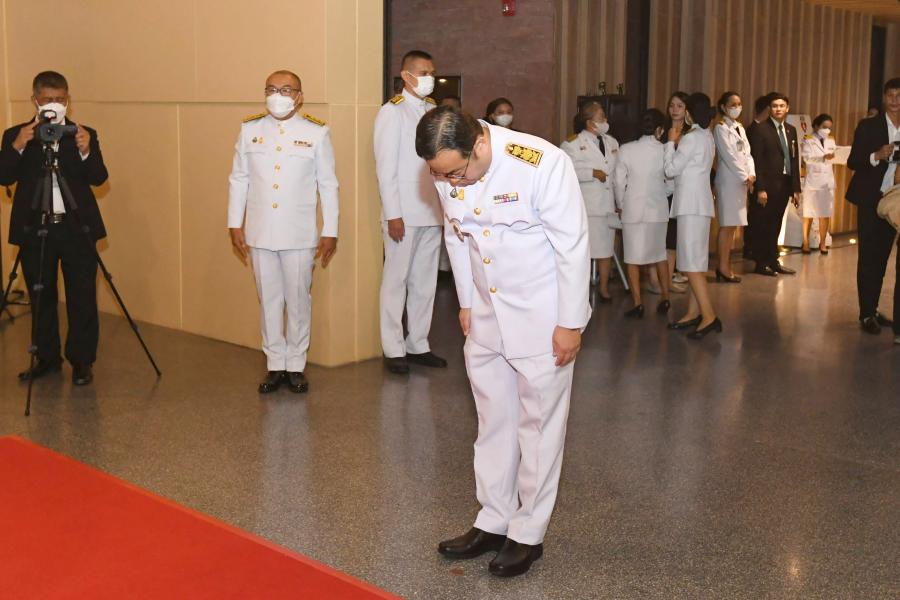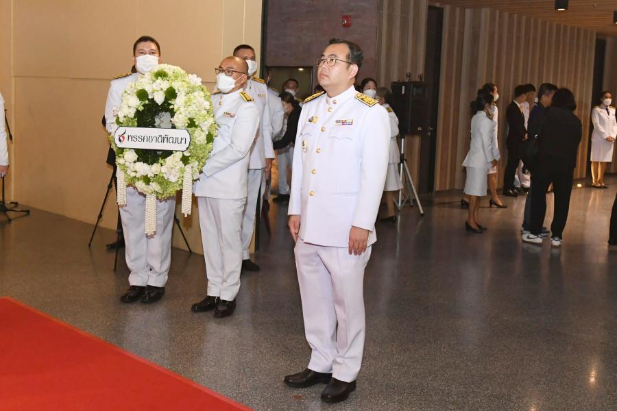 นายอรัญ พันธุมจินดา ผู้แทนพรรคชาติพัฒนา วางพวงมาลาถวายราชสักการะ พระบาทสมเด็จ พระปกเกล้าเจ้าอยู่หัว ในนาม พรรคชาติพัฒนา