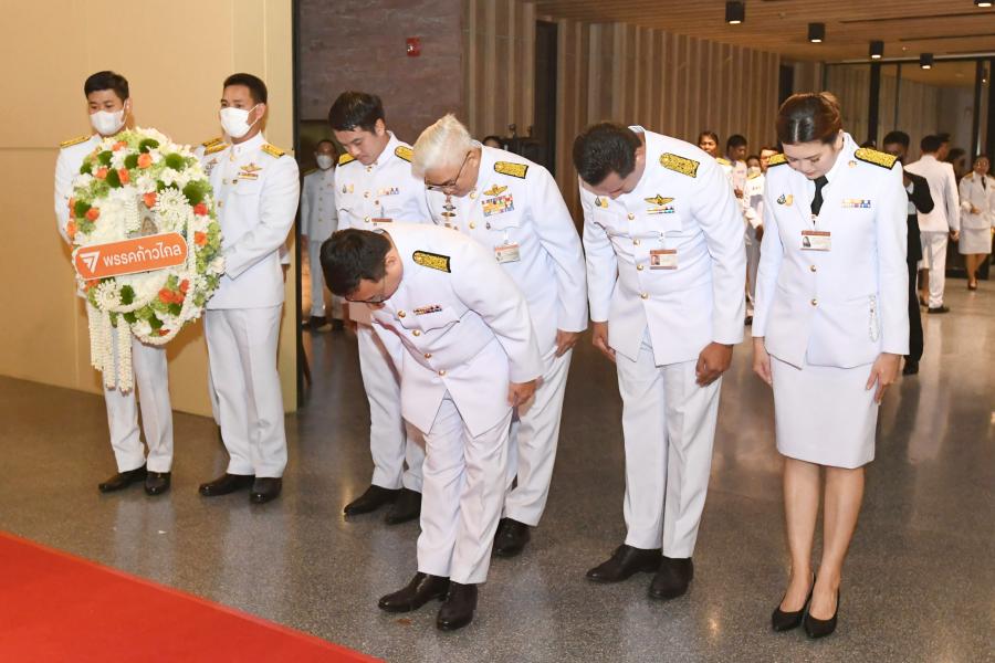 นายชัยธวัช ตุลาธน หัวหน้าพรรคก้าวไกล พร้อมด้วย สมาชิก สภาผู้แทนราษฎร พรรคก้าวไกล วางพวงมาลาถวายราชสักการะพระบาทสมเด็จพระปกเกล้าเจ้าอยู่หัว ในนาม พรรคก้าวไกล