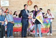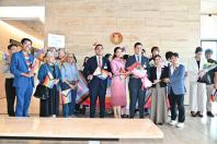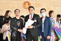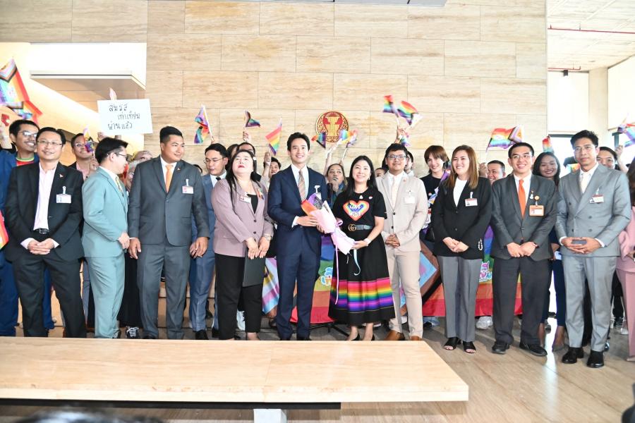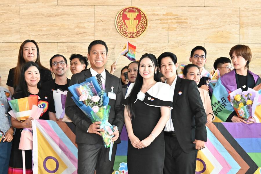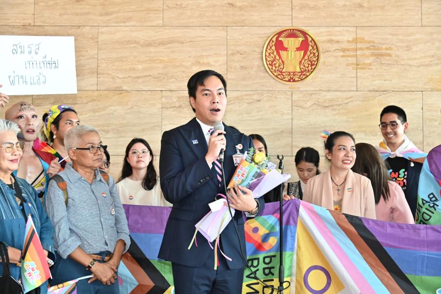 สมาชิกสภาผู้แทนราษฎร รับมอบดอกไม้แสดงความขอบคุณจากกลุ่มนักกิจกรรม และ LGBTI+ ที่ช่วย ผลักดันและสนับสนุนกฎหมายสมรสเท่าเทียม จนผ่านความเห็นชอบจากทั้ง 2 สภา