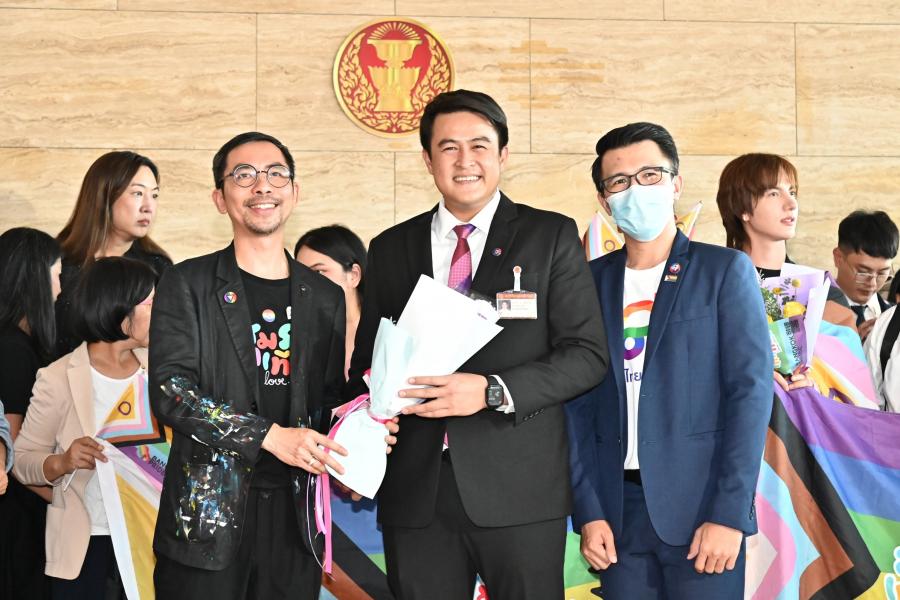 โอกาสนี้ นายกัณวีร์ สืบแสง สส.พรรคเป็นธรรม นายพิธา ลิ้มเจริญรัตน์ สส.พรรคก้าวไกล นายชัชวาล แพทยาไทย สส.พรรคไทยสร้างไทย รศ.พิเศษดวงฤทธิ์ เบ็ญจาธิกุล ชัยรุ่งเรือง สส.พรรครวมไทยสร้างชาติ และนายอัครนันท์ กัณณ์กิตตินันท์ สส.พรรคเพื่อไทย รับมอบช่อดอกไม้เพื่อแสดงความขอบคุณจากภาคประชาชน นำโดย น.ส.อรรณว์ ชุมาพร นักกิจกรรม และตัวแทนคู่รัก LGBTI+ รวมทั้งกล่าวแสดงความยินดีที่กฎหมายฉบับนี้สำเร็จลุล่วงไปได้ด้วยดี เป็นการแสดงให้เห็นว่าความพยายามของพี่น้องประชาชนได้รับการตอบสนองจากทั้ง 2 สภา สิทธิในการอยู่ร่วมกัน สิทธิในการวางแผนครอบครัว สามารถทำได้โดยไม่ต้องคำนึงถึงเพศสภาพ ตลอดจนสะท้อนให้เห็นว่าไม่มีอะไรจะยิ่งใหญ่ไปกว่าเจตจำนงของพี่น้องประชาชน