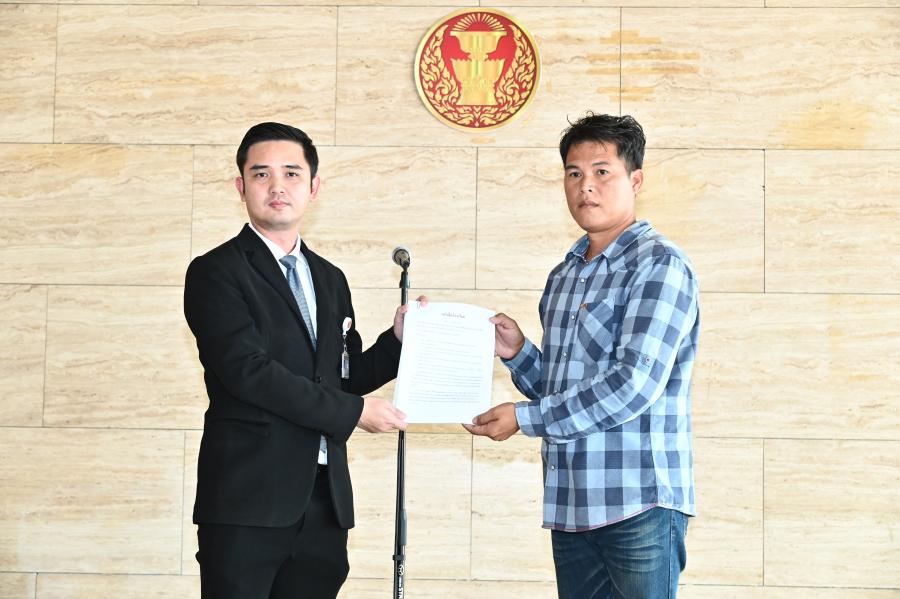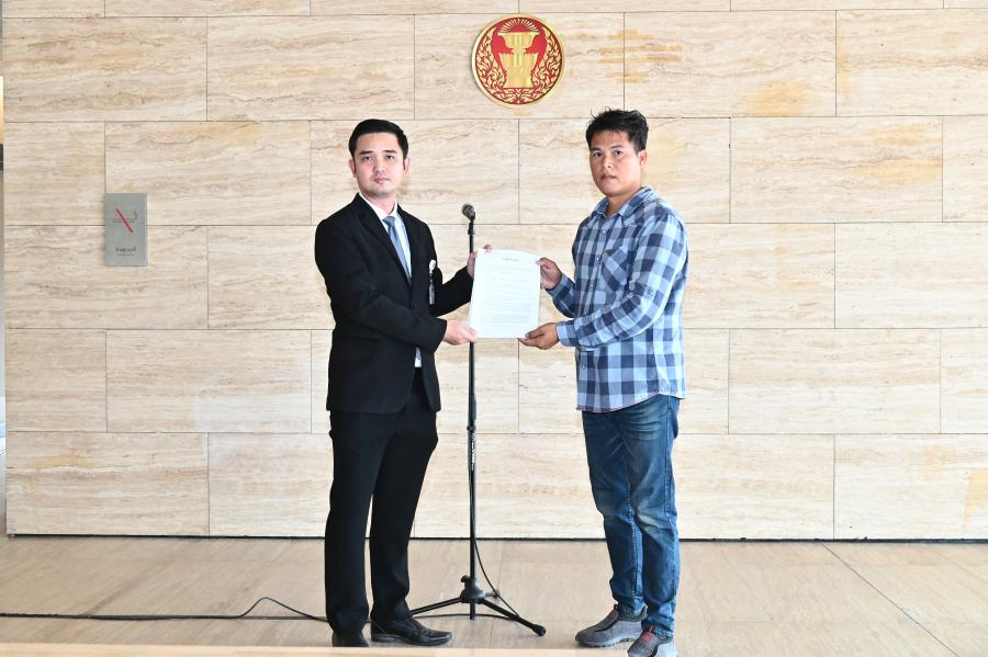 รองประธานสภาผู้แทนราษฎร คนที่หนึ่ง มอบหมายให้นายพงษ์สรณัฐ ทองลี เลขานุการรองประธานสภาผู้แทนราษฎร คนที่หนึ่ง รับยื่นหนังสือ จาก นายฐนิศร์ชัย ทิมทอง ตัวแทนประชาชนเทศบาล ตำบลคลองด่าน อ.บางบ่อ จ.สมุทรปราการ