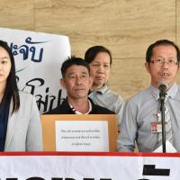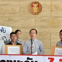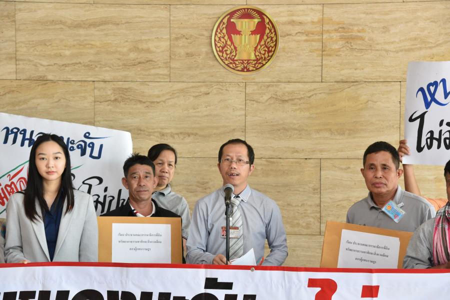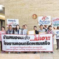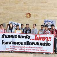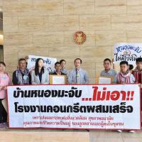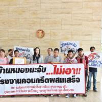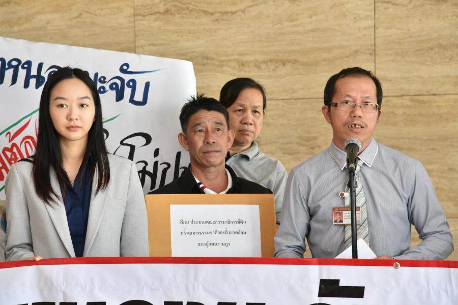 นายเลาฟั้ง บัณฑิตเทอดสกุล เลขานุการคณะ กมธ. การที่ดิน ทรัพยากรธรรมชาติและสิ่งแวดล้อม รับยื่นหนังสือจาก ร.ต.ถาวร ภีระคำ ตัวแทนชาวบ้านผู้ได้รับผลกระทบจากโรงงานผสมคอนกรีต (แพล้นปูน) และคณะ