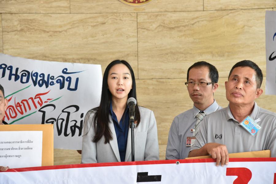 วันพุธที่ 26 มิถุนายน 2567 เวลา 11.30 นาฬิกา ณ จุดรับยื่นหนังสือ ชั้น 1 (โซนกลาง) อาคารรัฐสภา นายเลาฟั้ง บัณฑิตเทอดสกุล เลขานุการคณะ กมธ.การที่ดิน ทรัพยากรธรรมชาติและสิ่งแวดล้อม รับยื่นหนังสือจาก ร.ต.ถาวร ภีระคำ ตัวแทนชาวบ้านผู้ได้รับผลกระทบจากโรงงานผสมคอนกรีต (แพล้นปูน) และคณะ นำโดย น.ส.พุธิตา ชัยอนันต์ สมาชิกสภาผู้แทนราษฎร จังหวัดเชียงใหม่ พรรคก้าวไกล เรื่อง ขอความเป็นธรรมด้วยผู้ใหญ่บ้านหนองมะจับในขณะนั้นได้แจ้งมายังเทศบาลตำบลแม่แฝก ว่า ผู้ใหญ่บ้านพร้อมทั้งผู้ช่วยผู้ใหญ่บ้านได้สำรวจสอบถามความเห็นของประชาชนกรณีที่บริษัทแห่งหนึ่งได้ขออนุญาตก่อสร้างอาคารเพื่อใช้ในการทำโรงงานคอนกรีตผสมเสร็จในพื้นที่บ้านหนองมะจับ โดยได้แจ้งว่าประชาชนส่วนใหญ่ไม่มีปัญหาและอนุญาตให้ก่อสร้างอาคารดังกล่าวได้ ซึ่งเอกสารดังกล่าวเป็นเอกสารเท็จ ผู้ใหญ่บ้านได้จัดทำขึ้นโดยพลการ ไม่มีการสอบถาม ไม่มีการประชุมเพื่อลงมติใด ๆ เกี่ยวกับเรื่องดังกล่าว และทางเทศบาลได้ใช้เอกสารดังกล่าวมาเป็นข้อมูลหลักฐานในการจัดทำบันทึกข้อตกลง (MOU) ระหว่างบริษัทแห่งหนึ่งกับเทศบาลตำบลแม่แฝก การตั้งโรงงานดังกล่าวส่งกระทบต่อคุณภาพสิ่งแวดล้อม และส่งผลกระทบกับคุณภาพชีวิตของประชาชนในพื้นที่ จึงขอให้คณะ กมธ.ดำเนินการแก้ไขในส่วนที่เกี่ยวข้องต่อไป