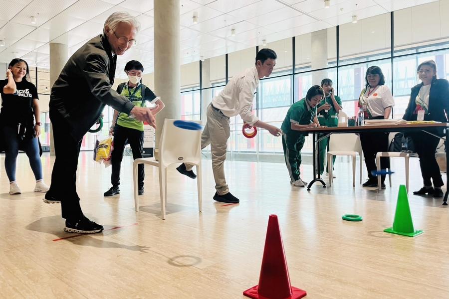 รองประธานสภาผู้แทนราษฎร คนที่หนึ่ง ให้เกียรติร่วมกิจกรรมโครงการสุขภาพดี Happy Body สร้างความผาสุก โดยได้ร่วมกิจกรรม ตาราง 9 ช่องอัจฉริยะ ขยับร่างกาย ห่างไกลโรค NCDs และโยนห่วงกิจกรรม