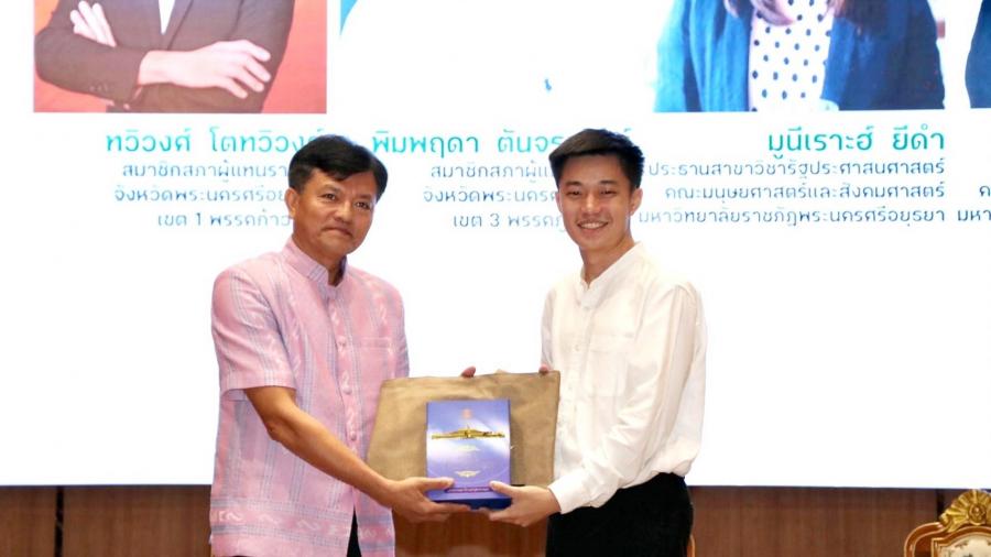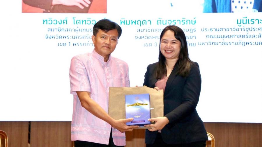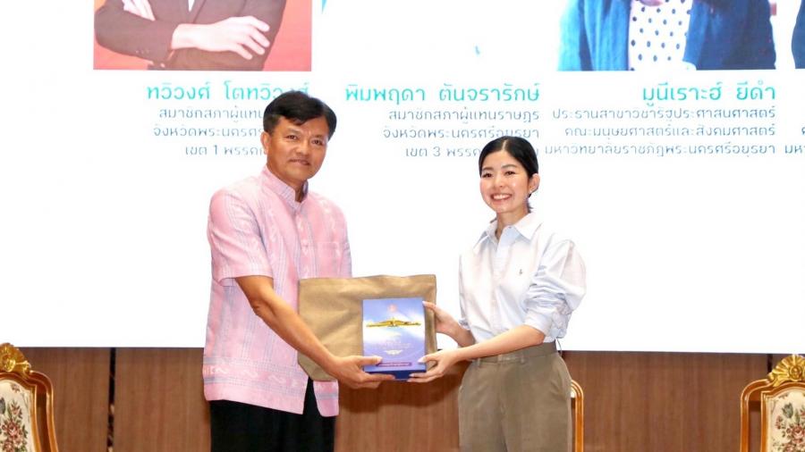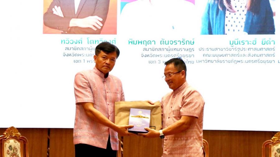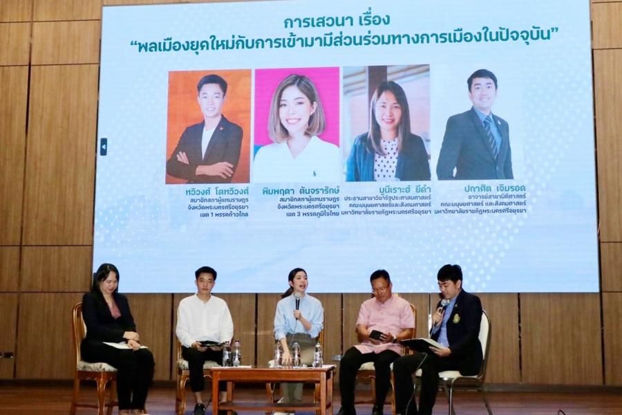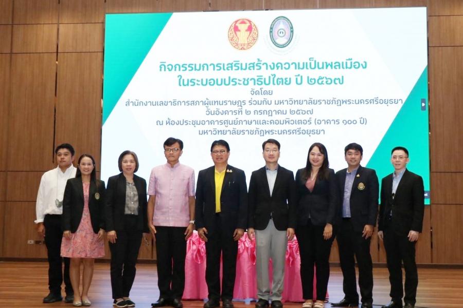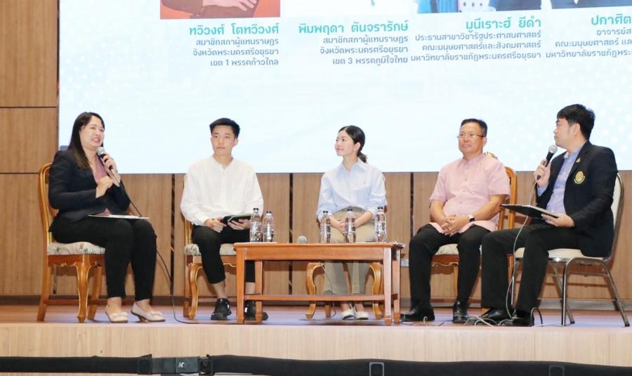 | วันอังคารที่ 2 กรกฎาคม 2567 เวลา 10.00 นาฬิกา ณ ห้องประชุมอาคารศูนย์ภาษาและคอมพิวเตอร์ (อาคาร 100 ปี) มหาวิทยาลัยราชภัฏพระนครศรีอยุธยา นายทวิวงศ์ โตทวิวงศ์ สมาชิกสภาผู้แทนราษฎร จังหวัดพระนครศรีอยุธยา พรรคก้าวไกล น.ส.พิมพฤดา ตันจรารักษ์ สมาชิกสภาผู้แทนราษฎร จังหวัดพระนครศรีอยุธยา พรรคภูมิใจไทย นายสุจิน บุญมาเลิศ ผู้เชี่ยวชาญพิเศษด้านการบริหารงานทรัพยากรบุคคล องค์การบริหารส่วนจังหวัดพระนครศรีอยุธยา ผศ.มูนีเราะห์ ยีดำ ประธานสาขาวิชารัฐประศาสนศาสตร์ คณะมนุษยศาสตร์และสังคมศาสตร์ มหาวิทยาลัยราชภัฏพระนครศรีอยุธยา และ ผศ.ปกาศิต เจิมรอด อาจารย์สาขานิติศาสตร์ คณะมนุษยศาสตร์และสังคมศาสตร์ มหาวิทยาลัยราชภัฏพระนครศรีอยุธยา ร่วมเสวนา เรื่อง พลเมืองยุคใหม่กับการมีส่วนร่วมทางการเมืองในปัจจุบัน เพื่อแลกเปลี่ยนทรรศนะและมุมมองเกี่ยวกับการมีส่วนร่วมทางการเมืองของพลเมืองยุคใหม่ บทบาทของสมาชิกสภาผู้แทนราษฎรในพื้นที่ บทบาทขององค์กรปกครองส่วนท้องถิ่น โดยผู้ร่วมเสวนาชี้ให้เห็นว่าการเปลี่ยนแปลงของยุคสมัยตั้งแต่อดีตจนถึงยุคแห่งเทคโนโลยีดิจิทัลในปัจจุบันที่การติดต่อสื่อสารเป็นไปอย่างรวดเร็ว ส่งผลให้เยาวชนคนรุ่นใหม่ที่มีทักษะการใช้เทคโนโลยีสามารถเข้ามามีส่วนร่วมทางการเมืองได้มากขึ้น ผ่านช่องทางต่าง ๆ อาทิ การเป็นตัวแทนของนักเรียนในรูปแบบคณะกรรมการนักเรียน การตรวจสอบคุณสมบัติของผู้เลือกตั้ง การแสดงความเห็นต่อร่างกฎหมาย ตลอดจนการเข้าถึงข้อมูลจากหน่วยงานของรัฐ นอกจากนี้ยังให้ความสำคัญต่อการเปิดรับมุมมองที่หลากหลายโดยต้องยอมรับความเห็นที่แตกต่างกันและแสวงหาจุดร่วม เพื่อนำไปสู่การแก้ไขปัญหาที่ตรงจุดและยั่งยืน