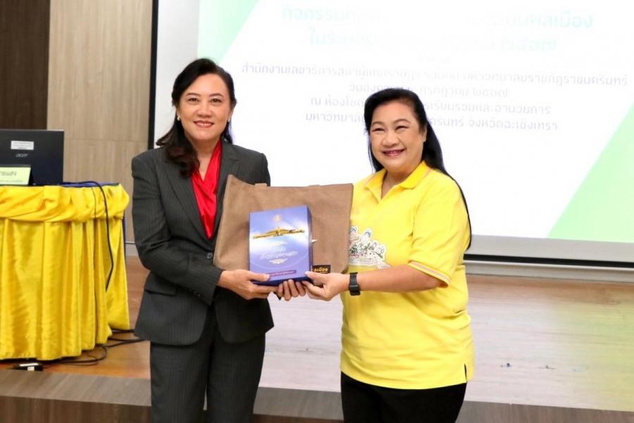 วันอังคารที่ 9 กรกฎาคม 2567 เวลา 10.00 นาฬิกา ณ ห้องโชคอนันต์ อาคารเรียนรวมและอำนวยการ มหาวิทยาลัยราชภัฏราชนครินทร์ จ.ฉะเชิงเทรา นางฐิติมา ฉายแสง สมาชิกสภาผู้แทนราษฎรจังหวัดฉะเชิงเทรา พรรคเพื่อไทย นายจิรัฏฐ์ ทองสุวรรณ์ สมาชิกสภาผู้แทนราษฎรจังหวัดฉะเชิงเทรา พรรคก้าวไกล ผศ.กันตพัฒน์ ชนะบุญ อาจารย์ประจำหลักสูตรรัฐศาสตรบัณฑิต มหาวิทยาลัยราชภัฏราชนครินทร์ ผศ.ดร.ไชยะ เทพา ประธานสาขาวิชารัฐศาสตร์ และ ผศ.มธุริน พงศกรพาณิช ประธานหลักสูตรนิติศาสตรบัณฑิต ร่วมเสวนาเรื่อง พลเมืองยุคใหม่กับการมีส่วนร่วมทางการเมืองในปัจจุบัน เพื่อแลกเปลี่ยนทรรศนะและมุมมองเกี่ยวกับแนวคิดการมีส่วนร่วมทางการเมืองของพลเมืองในยุคใหม่ พัฒนาการการมีส่วนร่วมตั้งแต่อดีตจนถึงปัจจุบัน โดยผู้ร่วมเสวนาชี้ให้เห็นว่า ในปัจจุบันพื้นที่การมีส่วนร่วมทางการเมืองเปลี่ยนแปลงไปต่างจากในอดีตที่ผ่านมา อย่างไรก็ตาม พลเมืองยุคใหม่ในฐานะกำลังหลักของประเทศต้องตระหนักถึงการมีส่วนร่วม โดยการแสวงหาความรู้ สนใจเหตุการณ์ทางการเมือง ตลอดจนการรู้เท่าทันสื่อ และการแสดงออกทางความคิดอย่างสร้างสรรค์ ทั้งนี้ ได้เปิดโอกาสให้กลุ่มเป้าหมายตั้งคำถามแลกเปลี่ยนในประเด็นต่าง ๆ ที่เกี่ยวข้องกับปัญหาในพื้นที่ และพูดคุยแลกเปลี่ยนในประเด็นต่าง ๆ ที่สังคมกำลังให้ความสนใจ สำหรับในช่วงบ่ายจะเป็นการจัดกิจกรรมแบ่งกลุ่มระดมสมอง เรื่อง บทบาทของเยาวชนพลเมืองในการขับเคลื่อนประเทศสู่ความมั่นคง มั่งคั่ง ยั่งยืน โดยวิทยากรจากสำนักงานเลขาธิการสภาผู้แทนราษฎร เพื่อให้กลุ่มเป้าหมายได้เห็นภาพรวมและทบทวนองค์ความรู้ที่ได้รับจากการฟังบรรยายและเสวนา โดยสามารถนำความรู้ที่ได้รับไปประยุกต์ใช้กับการสะท้อนปัญหาในพื้นที่ ตลอดจนแนวทางแก้ไขอย่างยั่นยืนโดยการมีส่วนร่วมของเยาวชน