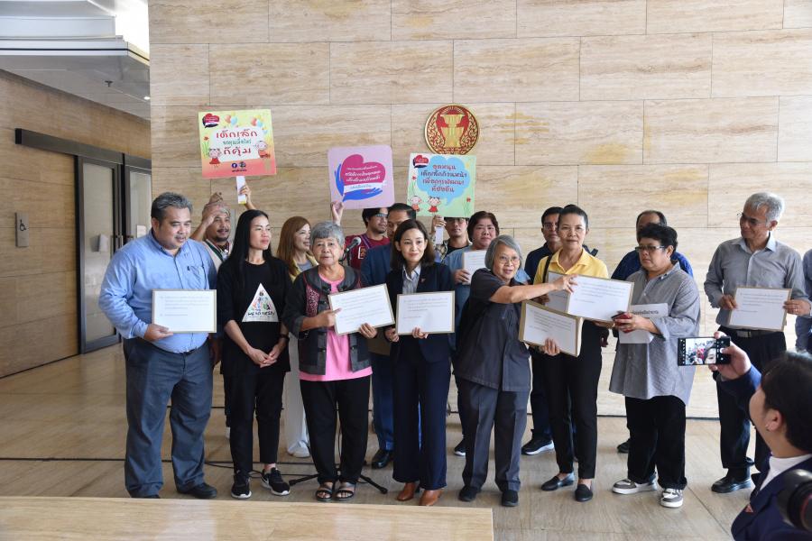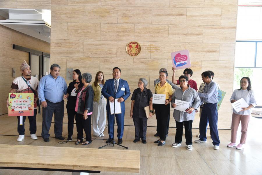 | วันพุธที่ 10 กรกฎาคม 2567 เวลา 09.30 นาฬิกา ณ จุดรับยื่นหนังสือ ชั้น 1 (โซนกลาง) อาคารรัฐสภา นายณัฐชา บุญไชยอินสวัสดิ์ ประธาน คณะ กมธ.การสวัสดิการสังคม พร้อมด้วยน.ส.ศศินันท์ ธรรมนิฐินันท์ กมธ.วิสามัญพิจารณาร่างพระราชบัญญัติงบประมาณรายจ่ายประจำปีงบประมาณ พ.ศ. 2568 รับยื่นหนังสือจาก นางสุนี ไชยรส คณะทำงานขับเคลื่อนนโยบายสวัสดิการเด็กเล็กถ้วนหน้า และกลุ่มภาคีเครือข่ายภาคประชาสังคมรัฐสวัสดิการถ้วนหน้า จากครรภ์มารดาถึงเชิงตะกอน (We fair) เรื่อง ติดตามงบประมาณสวัสดิการเฉพาะกลุ่ม เด็ก สตรี ผู้สูงอายุ คนพิการ ในร่าง พ.ร.บ. งบประมาณรายจ่ายประจำปีงบประมาณ พ.ศ.2568 เพื่อให้เป็นไปตามมติคณะกรรมการแก้ปัญหาขบวนการประชาชนเพื่อสังคมที่เป็นธรรม (พีมูฟ) ดังนี้ 1.กรณีเงินอุดหนุนเด็ก 0-6 ปี เดือนละ 600 บาท ปรับเป็นระบบถ้วนหน้า 2.เบี้ยความพิการ เดือนละ 800 บาท ปรับเป็น 1,000 บาท 3.เบี้ยยังชีพผู้สูงอายุ เดือนละ 600-1,000 บาท ปรับเป็น 1,000 บาท 4.เงินอุดหนุนสตรีมีครรภ์ถ้วนหน้า (เดือนที่ 5-9) เดือนละ 3,000 บาท