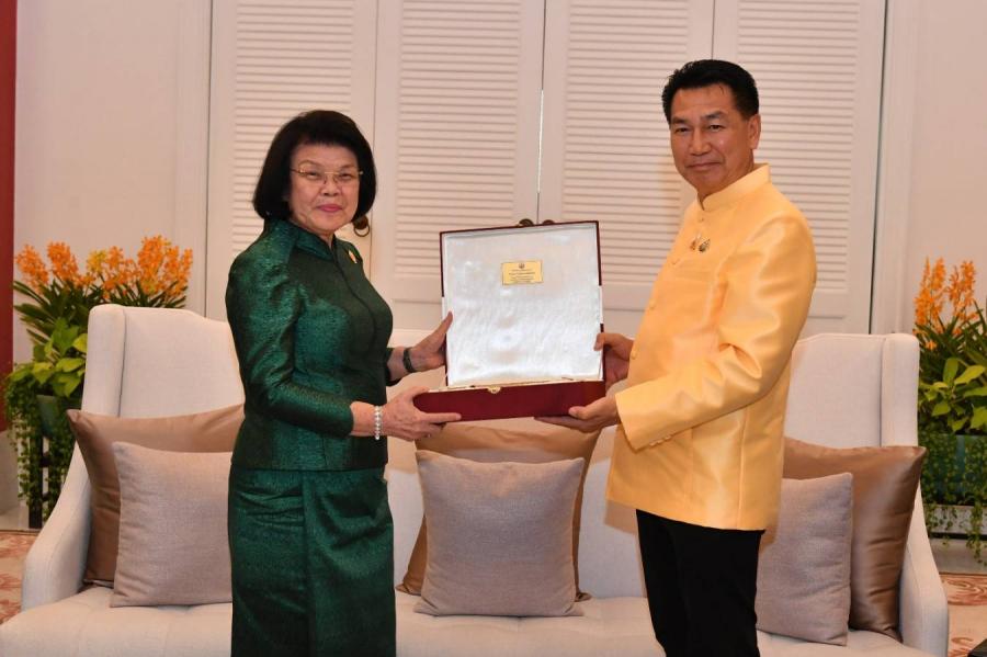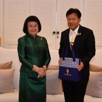 วันศุกร์ที่ 12 กรกฎาคม 2567 เวลา 13.45 นาฬิกา ณ ห้องรับรองพิเศษ ท่าอากาศยานสุวรรณภูมิ สมเด็จมหารัฐสภาธิการธิบดี ควน โซะดารี (Samdech Moha Rathsapheathika Thipadei KHUON SUDARY) ประธานสภาแห่งชาติราชอาณาจักรกัมพูชา และคณะผู้แทนสภาแห่งชาติราชอาณาจักรกัมพูชา เสร็จสิ้นภารกิจการเยือนประเทศไทยอย่างเป็นทางการ ในฐานะแขกของรัฐสภา ระหว่างวันที่ 11 - 12 ก.ค. 67 ในการนี้ นายพิเชษฐ์ เชื้อเมืองพาน รองประธานสภาผู้แทนราษฎร คนที่สอง ในฐานะผู้ติดตามเกียรติยศ พร้อมด้วย ว่าที่ ร.ต.ต.อาพัทธ์ สุขะนันท์ เลขาธิการสภาผู้แทนราษฎร และ น.ส.สตีจิตร ไตรพิบูลย์สุข รองเลขาธิการสภาผู้แทนราษฎร ร่วมให้การอำลาคณะผู้แทนสภาแห่งชาติราชอาณาจักรกัมพูชา พร้อมทั้งได้มอบของที่ระลึกในโอกาสดังกล่าว