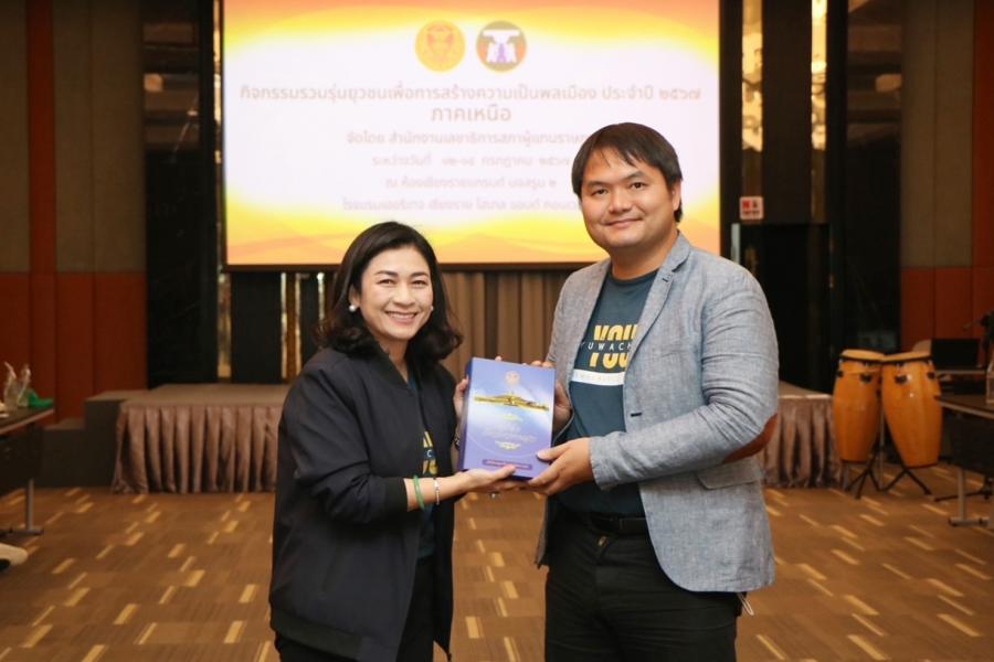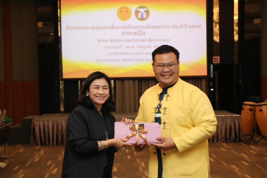 โอกาสนี้ นางจงเดือน สุทธิรัตน์ รองเลขาธิการสภาผู้แทนราษฎร มอบของที่ระลึกให้กับวิทยากรเพื่อแสดงความขอบคุณ |