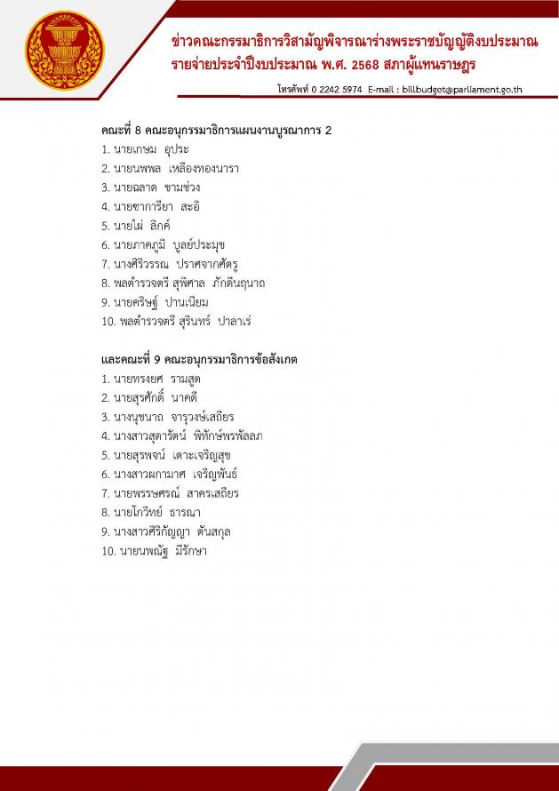 โดยคณะอนุ กมธ. 9 คณะดังกล่าวจะมีการประชุมครั้งแรก ในวันที่ (17 ก.ค. 67) เพื่อเลือกตำแหน่งต่าง ๆ ในคณะอนุกมธ. และวางกรอบแนวทางการพิจารณาของแต่ละคณะอนุกมธ. และจะรายงานผลการพิจารณาต่อที่ประชุมคณะกมธ. ภายในวันที่ 19 ส.ค. 67