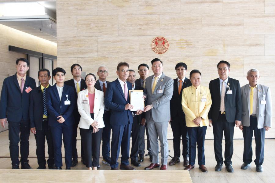 วันพฤหัสบดีที่ 18 กรกฎาคม 2567 เวลา 09.30 นาฬิกา ณ จุดรับยื่นหนังสือชั้น 1 (โซนกลาง) อาคารรัฐสภา นายศักดิ์ชาย ตันเจริญ ประธานคณะ กมธ.วิสามัญพิจารณาติดตามผลการดำเนินงานและศึกษาแนวทางการแก้ไขปัญหาช้างป่าอย่างยั่งยืน รวมทั้งมาตรการเยียวยาความเสียหายให้กับประชาชนที่ได้รับผลกระทบ พร้อมด้วย นายชุติพงศ์ พิภพภิญโญ รองประธานคณะ กมธ. คนที่หนึ่ง และคณะ รับยื่นข้อเสนอเชิงนโยบาย 10 ข้อ จากสภาเกษตรกรแห่งชาติ เพื่อแก้ไขปัญหาความเดือดร้อนจากช้างป่าอย่างยั่งยืน จากนายเสถียร เสือขวัญ ประธานสภาเกษตรกรจังหวัดระยอง และนายศรัณย์พงศ์ ฟุ้งเกียรติ รองเลขาธิการสภาเกษตรกรแห่งชาติ และคณะ