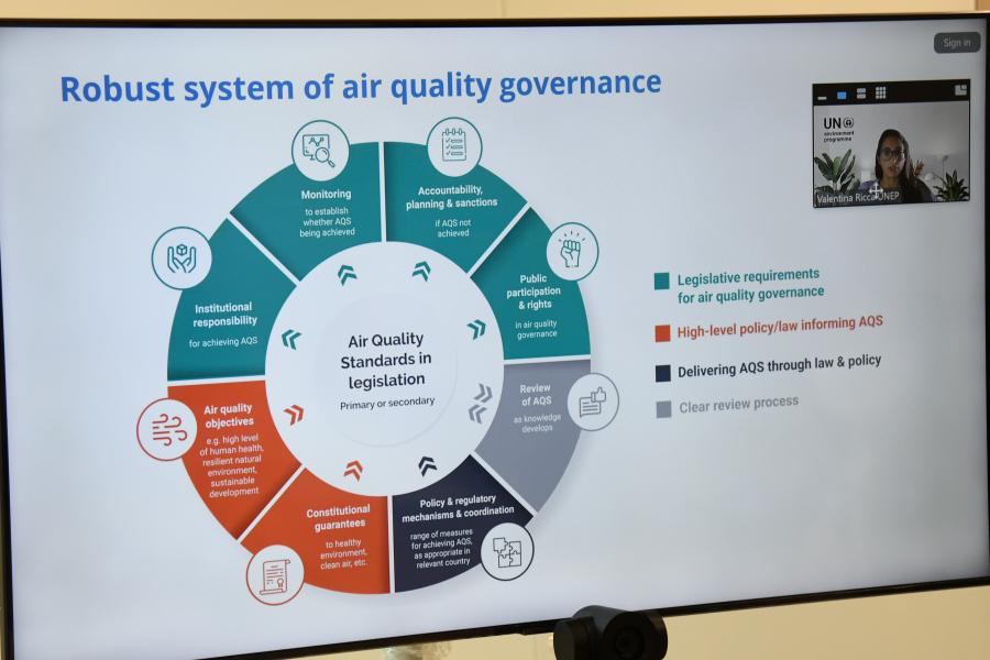 ช่วงที่ 1 หัวข้อ Understanding the latest trends, challenges and opportunities for addressing air pollution through legislation โดยมี Ms. Valentina Ricca ผู้ช่วยฝ่ายกฎหมาย โครงการสิ่งแวดล้อมแห่งสหประชาชาติ (United Nations Environment Programme : UNEP) และ Mr. Tom Bannister ที่ปรึกษาของ UNEP เป็นผู้นำเสนอ ในประเด็นเกี่ยวกับการจัดการกับมลพิษทางอากาศผ่านกฎหมายจากทั่วทุกมุมโลกโดยเน้นย้ำถึงสิทธิในอากาศบริสุทธิ์ในฐานะสิทธิมนุษยชน ตลอดจนแนวปฏิบัติที่ดีในการส่งเสริม การควบคุม และการจัดการอากาศบริสุทธิ์ผ่านกฎหมาย บริบทข้ามพรมแดน และการสนับสนุนด้านการเงินเพื่อการพัฒนาที่ยั่งยืนสำหรับอากาศสะอาด