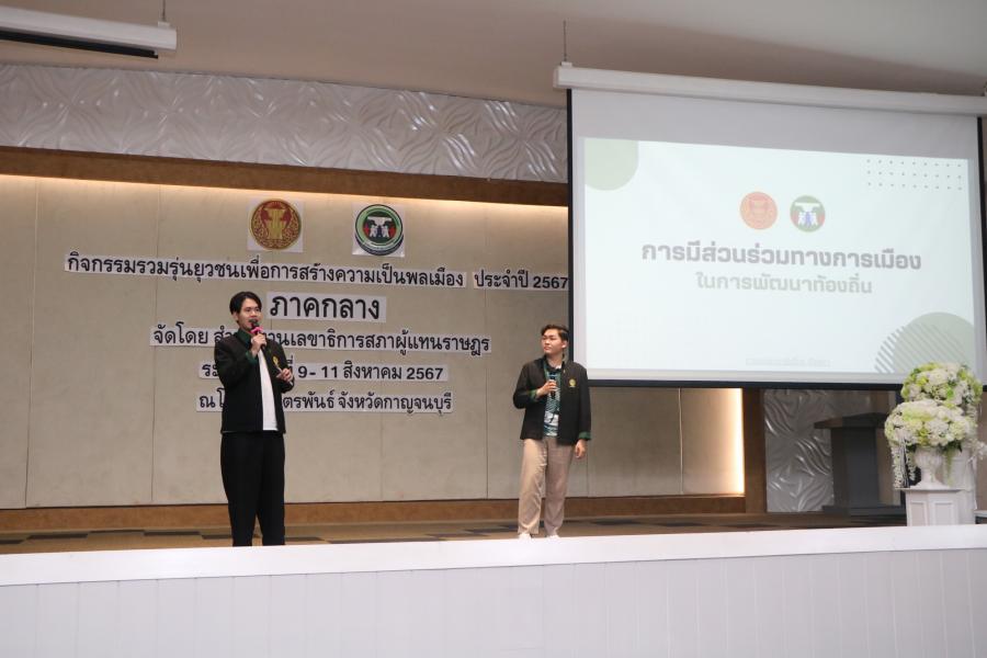 วันเสาร์ที่ 10 สิงหาคม 2567 เวลา 15.00 - 17.00 นาฬิกา ณ ห้องคอนเวนชั่น โรงแรมมิตรพันธ์ จ.กาญจนบุรี ยุวสมาชิกรัฐสภาไทย ประกอบด้วย น.ส.ศศินันท์ ธรรมนิฐินันท์ สมาชิกสภาผู้แทนราษฎร กรุงเทพมหานคร เขต 11 นายปิยรัฐ จงเทพ สมาชิกสภาผู้แทนราษฎร กรุงเทพมหานคร เขต 23 และน.ส.พิมพ์กาญจน์ กีรติวิราปกรณ์ สมาชิกสภาผู้แทนราษฎร กรุงเทพมหานคร เขต 16 ร่วมเวทีอภิปราย หัวข้อ กิจกรรมสร้างเครือข่ายยุวชนจุดเริ่มต้นการแก้ไขปัญหาท้องถิ่น โดยมี นายมารุต สมรส ยุวชนประชาธิปไตย กรุงเทพมหานคร ปี 2557 เป็นผู้ดำเนินการอภิปราย