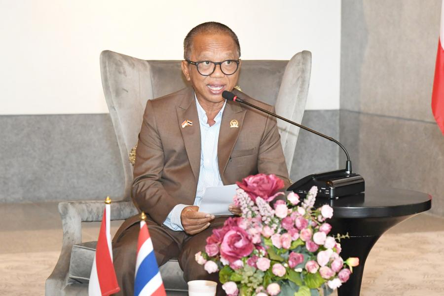 ประธานกลุ่มมิตรภาพสมาชิกรัฐสภาอินโดนีเซีย - ไทย กล่าวขอบคุณที่ให้การต้อนรับอย่างอบอุ่น ความสัมพันธ์ไทย อินโดนีเซีย ดำเนินมาด้วยดีตลอด 74 ปี ไม่เพียงแต่มีความสัมพันธ์ที่ดีด้านการเมืองและเศรษฐกิจเท่านั้นแต่ยังรวมถึงความสัมพันธ์ด้านสังคม วัฒนธรรม และการศึกษาด้วย อีกทั้งยังมีการลงนามข้อตกลงร่วมกันในด้านต่าง ๆ อาทิ ด้านการศึกษา ความมั่นคง รวมถึงด้านการต่อต้านยาเสพติด ปัจจุบันสาธารณรัฐอินโดนีเซียกับไทยมีขนาดเศรษฐกิจใหญ่เป็นอันดับ 1 และ 2 ของอาเซียน หรือคิดเป็นประมาณร้อยละ 50 ของขนาดเศรษฐกิจทั้งหมดของอาเซียน ในปี 2566 มูลค่าการค้าระหว่างกันมีประมาณ 1.8 หมื่นล้านเหรียญสหรัฐฯ และจะได้ส่งเสริมการค้าระหว่างกันให้เพิ่มมากยิ่งขึ้นต่อไปนอกจากนี้ ทั้งสองฝ่ายได้หารือกันในเรื่องการเกษตรและผ้าไหมไทย เพื่อที่จะได้มีความร่วมมือและแลกเปลี่ยนองค์ความรู้ระหว่างกันในอนาคต