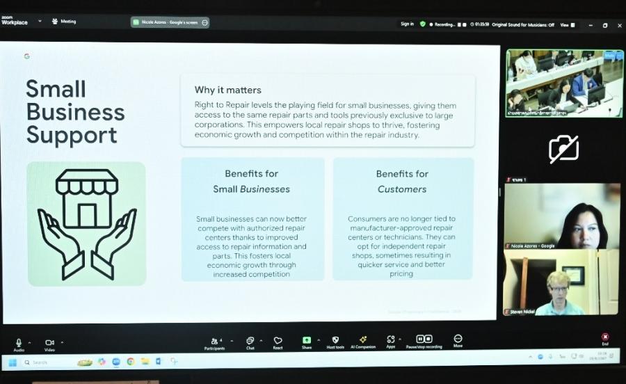 วันพฤหัสบดีที่ 29 สิงหาคม 2567 เวลา 09.30 นาฬิกา ณ ห้องประชุม CB 303 ชั้น 3 อาคารรัฐสภา น.ส.ธีรรัตน์ สำเร็จวาณิชย์ ประธานคณะ กมธ. การสื่อสารโทรคมนาคม และดิจิทัลเพื่อเศรษฐกิจและสังคม เป็นประธานการประชุมคณะ กมธ. ครั้งที่ 35 เพื่อพิจารณาเรื่องการหารือแนวทางการคุ้มครองสิทธิการซ่อม (Right to Repair)ของผู้บริโภคที่เกี่ยวข้องกับอุปกรณ์ เทคโนโลยีสื่อสาร สารสนเทศ และ IoT |