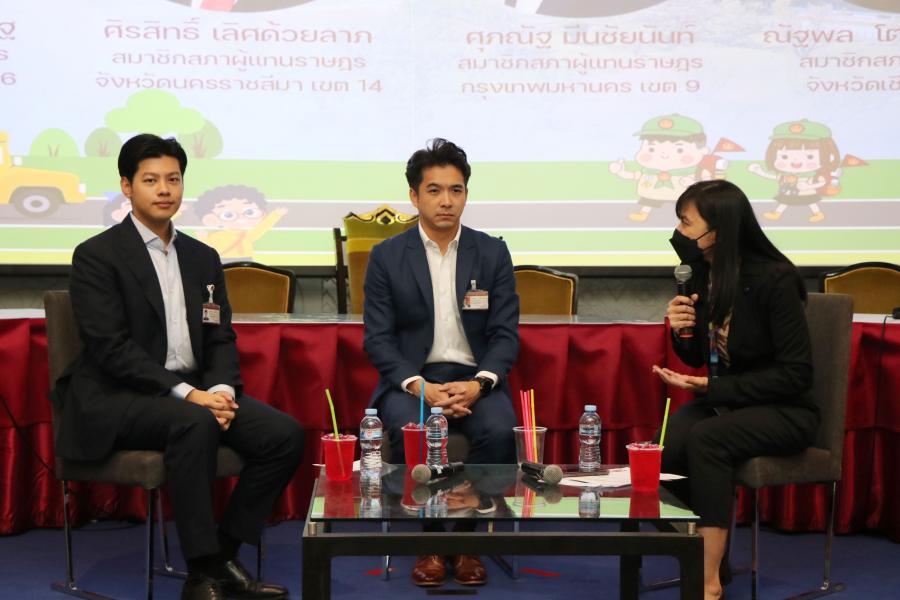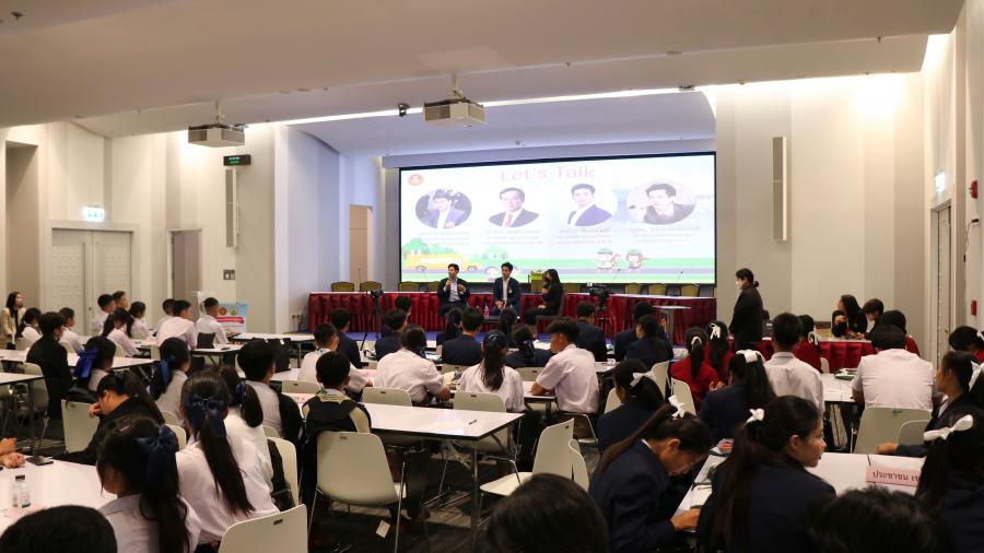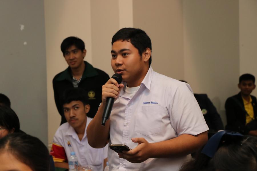 ด้านนายศุภณัฐ มีนชัยนันท์ และนายณัฐพล โตวิจักษณ์ชัยกุล ได้ร่วมพูดคุยแลกเปลี่ยนกับนักเรียน ช่วง "Let's Talk" ในหลากหลายประเด็น อาทิ ปัญหาหลักสูตรการศึกษาที่ไม่ตอบโจทย์ความต้องการของนักเรียน ปัญหาการซื้อสิทธิขายเสียงในการเลือกตั้งระดับต่าง ๆ ประเด็นการกระจายอำนาจสู่ท้องถิ่น ปัญหาการขนส่งสาธารณะ ตลอดจนประเด็นการท่องเที่ยวอย่างยั่งยืน ทั้งนี้ ผู้เข้าร่วมโครงการในวันนี้ มีจำนวนทั้งสิ้น 125 คน จาก 7 โรงเรียน ได้แก่ โรงเรียนสวนศรีวิทยา โรงเรียนบ่อพลอยรัชดาภิเษก โรงเรียนวิทยาศาสตร์จุฬาภรณราชวิทยาลัย ชลบุรี โรงเรียนห้วยน้ำหอมวิทยาคาร โรงเรียนดอยสะเก็ดวิทยาคม โรงเรียนปากช่อง และโรงเรียนดอนเมืองทหารอากาศบำรุง
