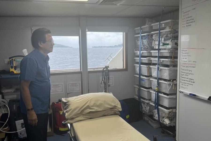 ต่อมา คณะผู้แทนรัฐสภาไทยได้ล่องเรือไปยังเกาะเลเลปา (Lelepa Island) โดยใช้เรือขนาดใหญ่ คือ HELPR-1 ซึ่งเป็นเรือที่ตอบสนองต่อสถานการณ์ฉุกเฉิน และมีความพร้อมของอุปกรณ์อำนวยความสะดวกทางการแพทย์ และห้องพักของบุคลากรปฏิบัติการ โดยเรือดังกล่าวสามารถออกปฏิบัติการการเพื่อช่วยเหลือและรักษาประชาชนที่อยู่ตามหมู่เกาะต่าง ๆ โดยเฉพาะแถบ 6 จังหวัดใกล้เคียง เพื่อการเข้าถึงการบริการทางการแพทย์อย่างเท่าเทียมกันในวานูอาตู