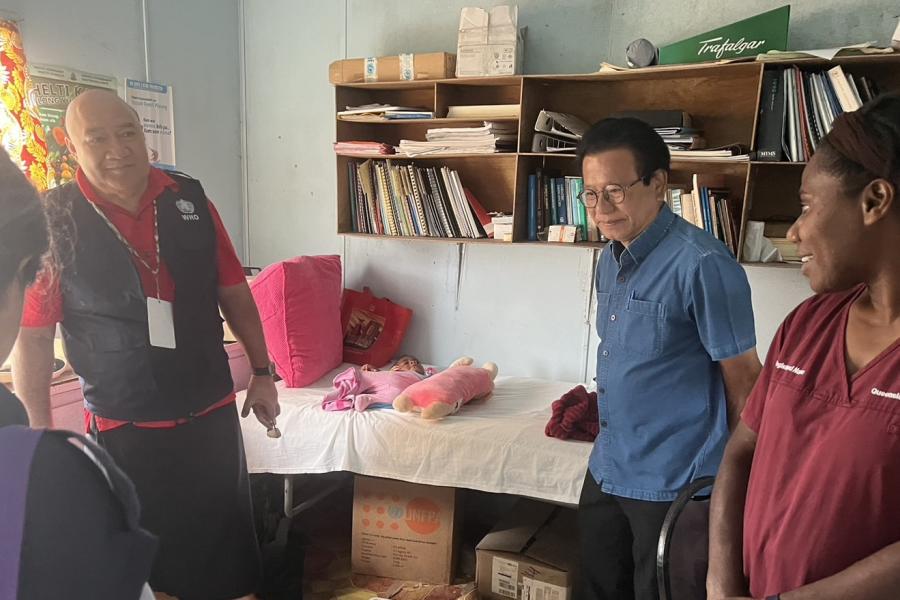 โดยในช่วงเช้า คณะผู้แทนรัฐสภาไทยได้เดินทางออกจากกรุงพอร์ตวิลาไปยังศูนย์สุขภาพ Saupia ที่ตั้งอยู่ในหมู่บ้าน Paonangisu ของเกาะเอฟาเตเหนือ (North Efate Island) ซึ่งสามารถรองรับประชากรได้ 4,000 คน โดยมีความพร้อมที่จะรักษาประชากรในหมู่บ้านและละแวกใกล้เคียง ซึ่งหากอาการผู้ป่วยหนักจึงส่งต่อไปยังโรงพยาบาลในกรุงพอร์ตวิลาต่อไป ศูนย์สุขภาพแห่งนี้มีบุคลากรสุขภาพ 11 คน แบ่งเป็น พยาบาลวิชาชีพ ผู้ช่วยพยาบาล นางพยาบาลผดุงครรภ์ บุคลากรที่มีทักษะทางการแพทย์ และบุคลากรสนับสนุน และมีห้องต่าง ๆ รองรับการรักษา อาทิ ห้องวัคซีน ห้องเลี้ยงเด็ก และห้องให้คำปรึกษา