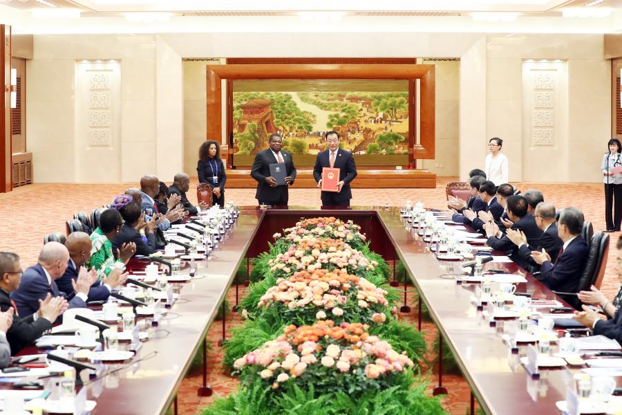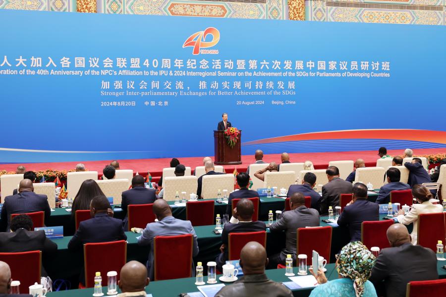 อนึ่ง ในช่วงบ่ายของวันเดียวกันนี้ ประธานาธิบดีสี จิ้นผิง ได้ให้เกียรติพบปะกลุ่มผู้นำรัฐสภาจากประเทศต่าง ๆ ที่เข้าร่วมพิธีฉลองครบรอบ 40 ปี แห่งการเข้าร่วมเป็นสมาชิกสหภาพรัฐสภา (IPU) ของสภาประชาชนแห่งชาติจีน (NPC) และการสัมมนาระหว่างภูมิภาคว่าด้วยการบรรลุเป้าหมายการพัฒนาที่ยั่งยืนสำหรับรัฐสภาประเทศกำลังพัฒนา ประจำปี 2567 ณ มหาศาลาประชาชน กรุงปักกิ่ง ประธานาธิบดีสี จิ้นผิง ได้กล่าวต้อนรับการมาเยือนจีนของประธานรัฐสภา/ประธานสภาจากมิตรประเทศ พร้อมกล่าวว่า “พวกเราทุกคนเป็นสมาชิกของกลุ่มประเทศกำลังพัฒนา” แม้จะมีสถานะที่แตกต่างกัน แต่จีนและประเทศต่าง ๆ ล้วนเป็นพี่น้อง และหุ้นส่วนที่มีวิสัยทัศน์ร่วมกัน จีนพร้อมที่จะทำงานร่วมกับประเทศอื่น ๆ เพื่อสนับสนุนโลกที่มีหลายขั้วอำนาจอย่างเท่าเทียมและเป็นระเบียบเรียบร้อย ตลอดจนโลกาภิวัตน์ทางเศรษฐกิจที่เป็นประโยชน์และครอบคลุมทั่วโลก ส่งเสริมการสร้างชุมชนที่มีอนาคตร่วมกันสำหรับมนุษยชาติ และสร้างโลกที่เราอาศัยอยู่ให้เป็นครอบครัวที่กลมเกลียว