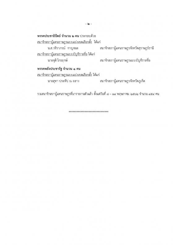 มารายงานตัว จำนวน ๑๔ คนและรวม ส.ส. ที่มารายงานตัวแล้ว