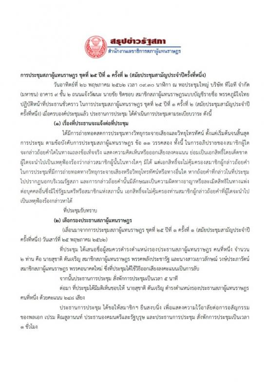 ประธานชั่วคราวในการประชุมสภาผู้แทนราษฎร ชุดที่ ๒๕ ปีที่ ๑ ครั้งที่ ๒