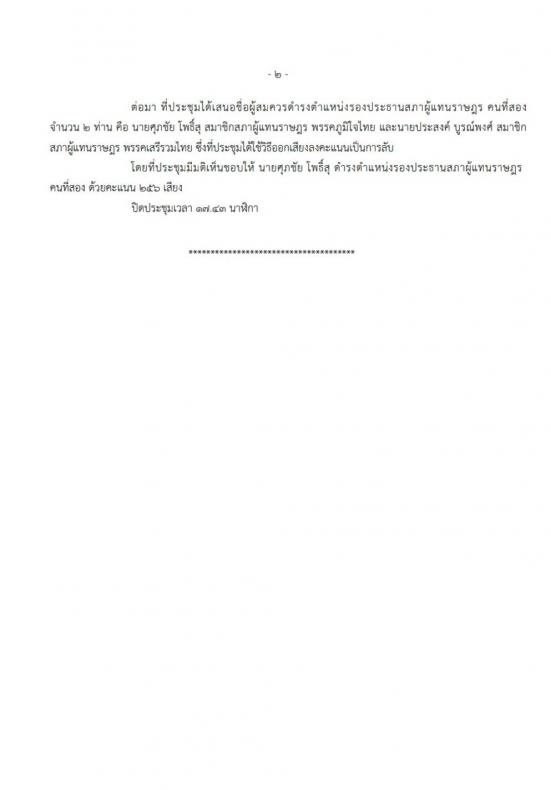เพื่อเลือกรองประธานสภาผู้แทนราษฎร (สมัยประชุมสามัญประจำปีครั้งที่หนึ่ง)