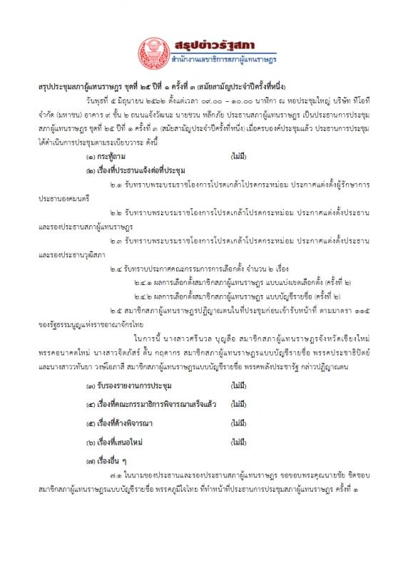 สภาผู้แทนราษฎร ชุดที่ ๒๕ ปีที่ ๑ ครั้งที่ ๓ (สมัยสามัญประจำปีครั้งที่หนึ่ง) โดยมี นายสุชาติ ตันเจริญ