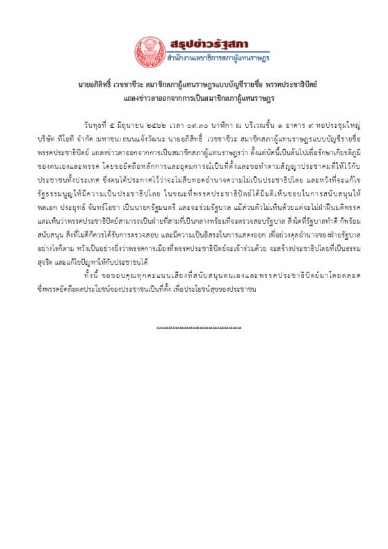สมาชิกสภาผู้แทนราษฎรแบบบัญชีรายชื่อ พรรคประชาธิปัตย์ แถลงข่าวลาออก